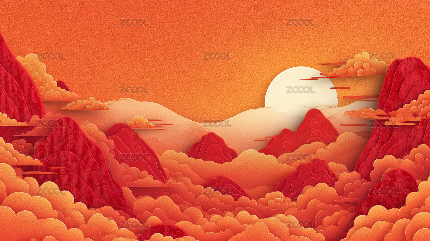 橘红色中式山水间背景