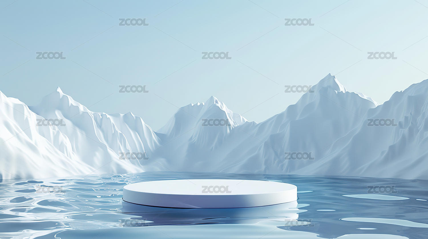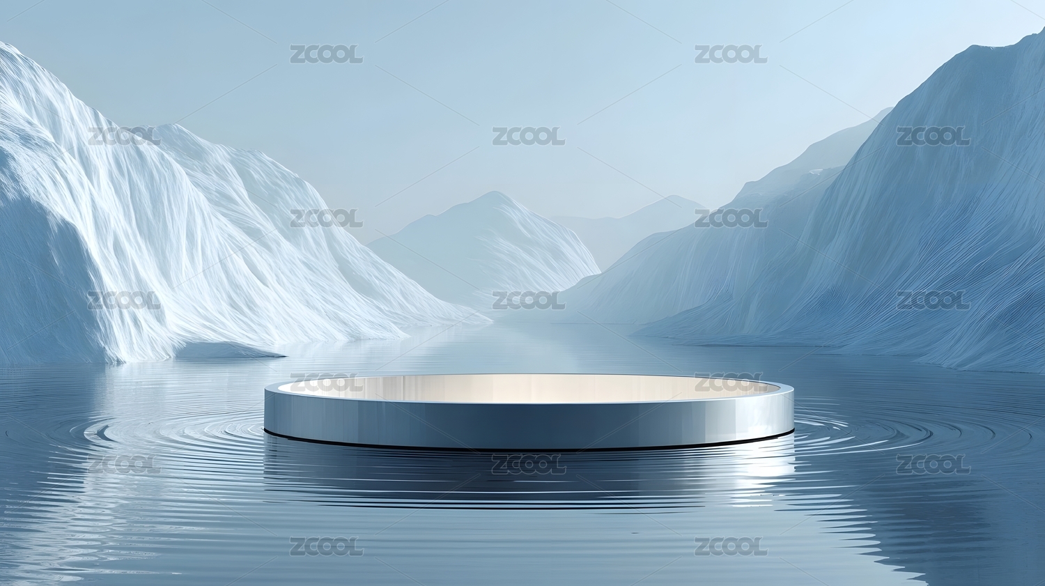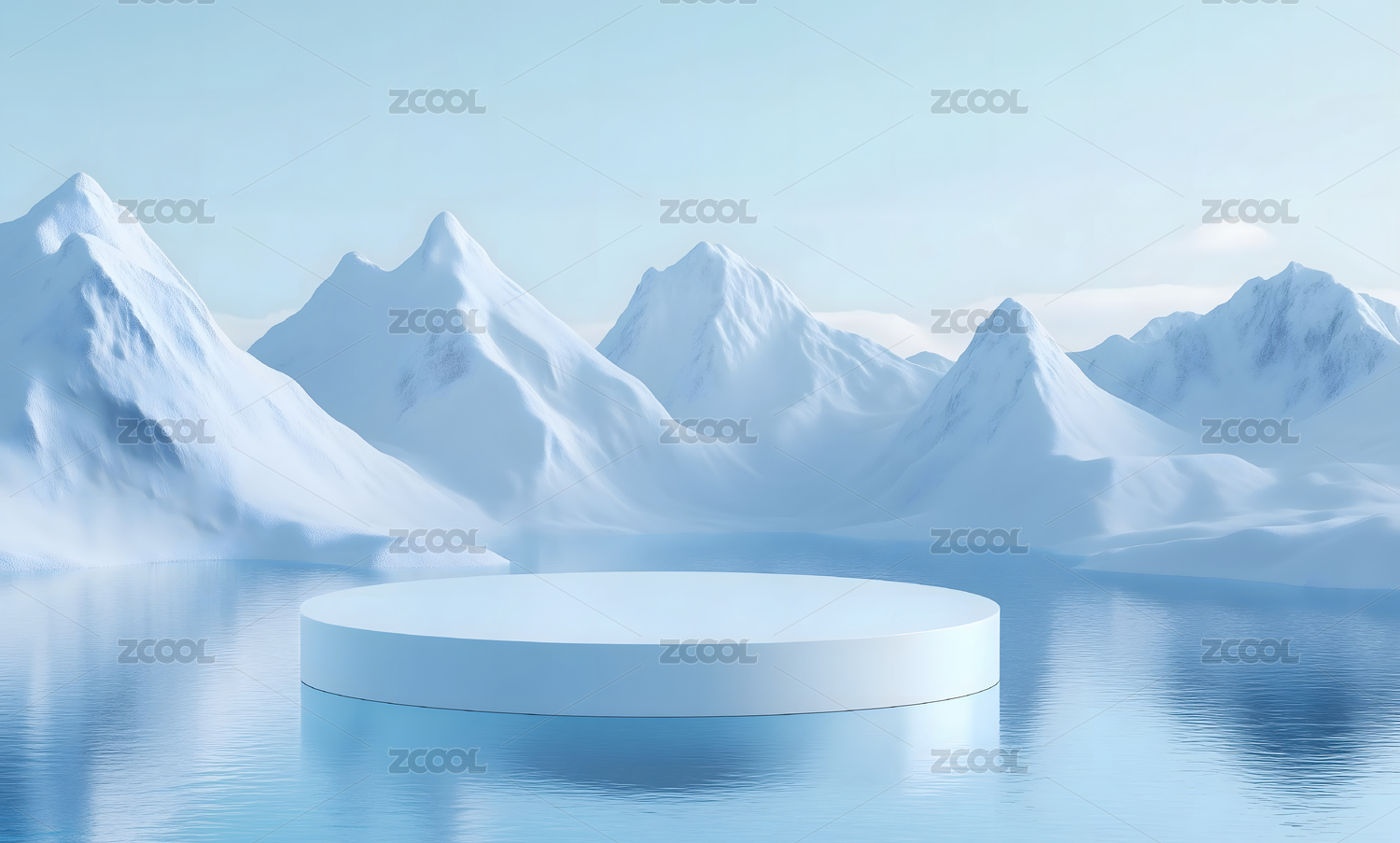 3D冬天户外雪山湖水风景圆形电商产品展台