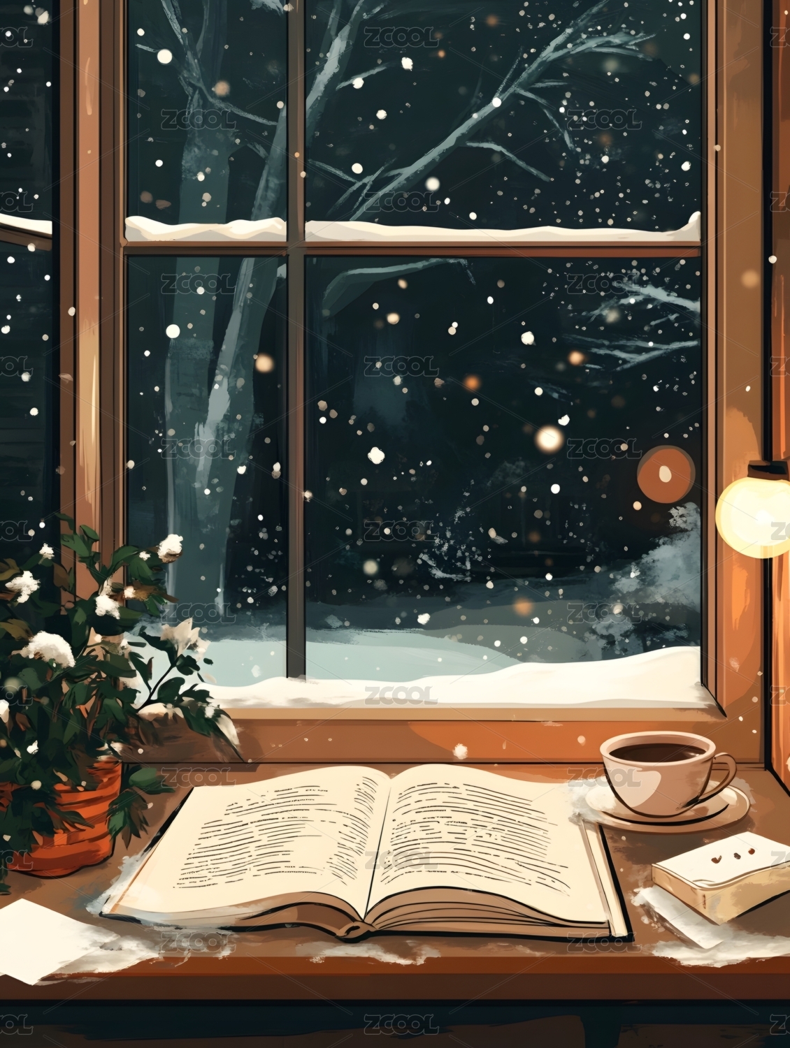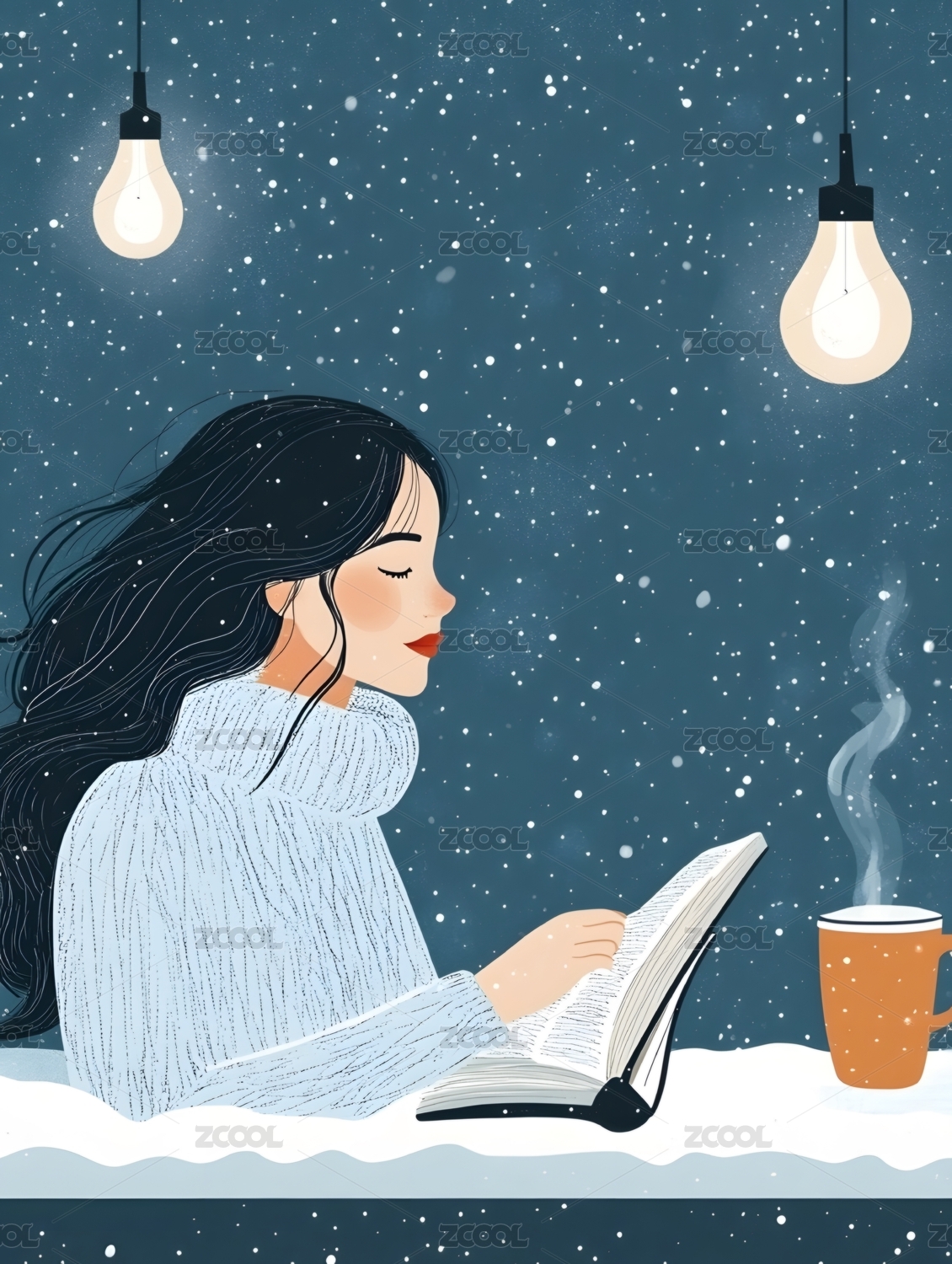 冬季晴朗天气中捧着咖啡杯的小女孩场景插画