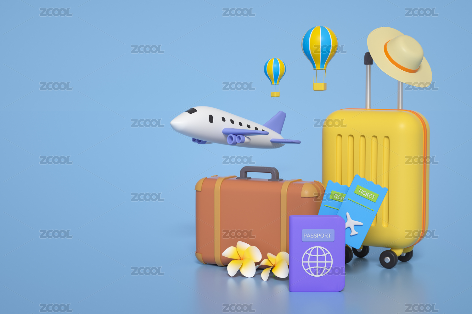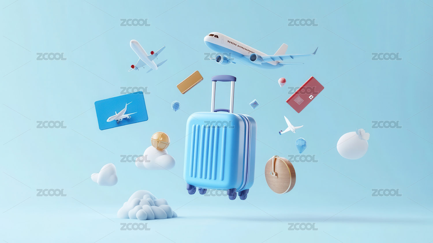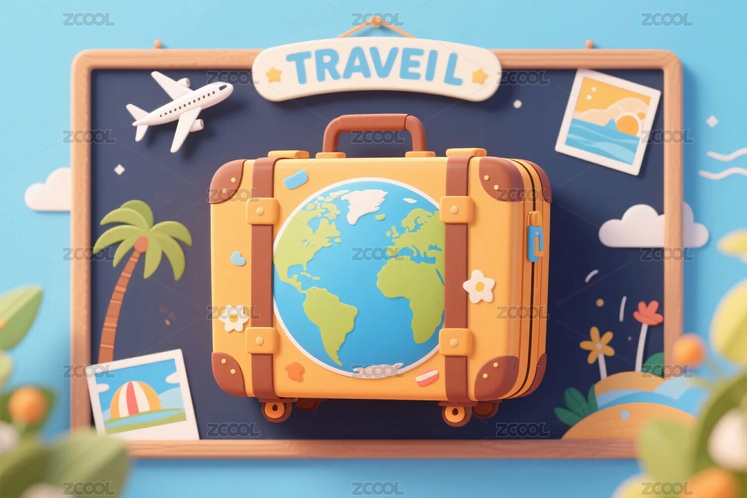 卡通行李箱与旅行主题3D渲染