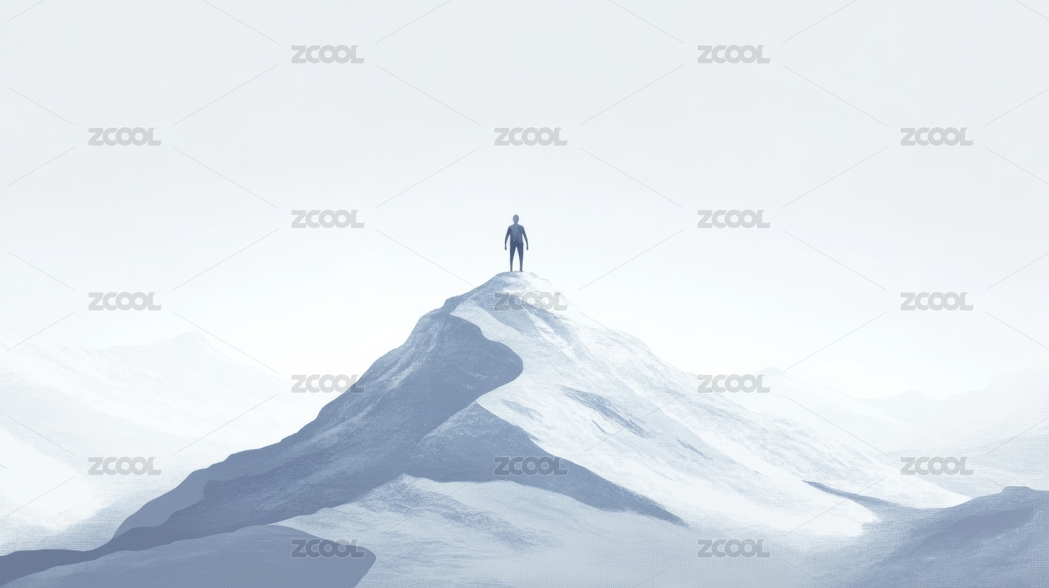 蓝天白云下人物伫立雪山之巅俯瞰云海插画
