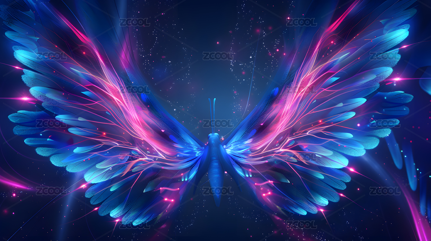 巨大,翅膀,双翼,倒影,水面,水波纹,彩色,抽象,艺术,唯美