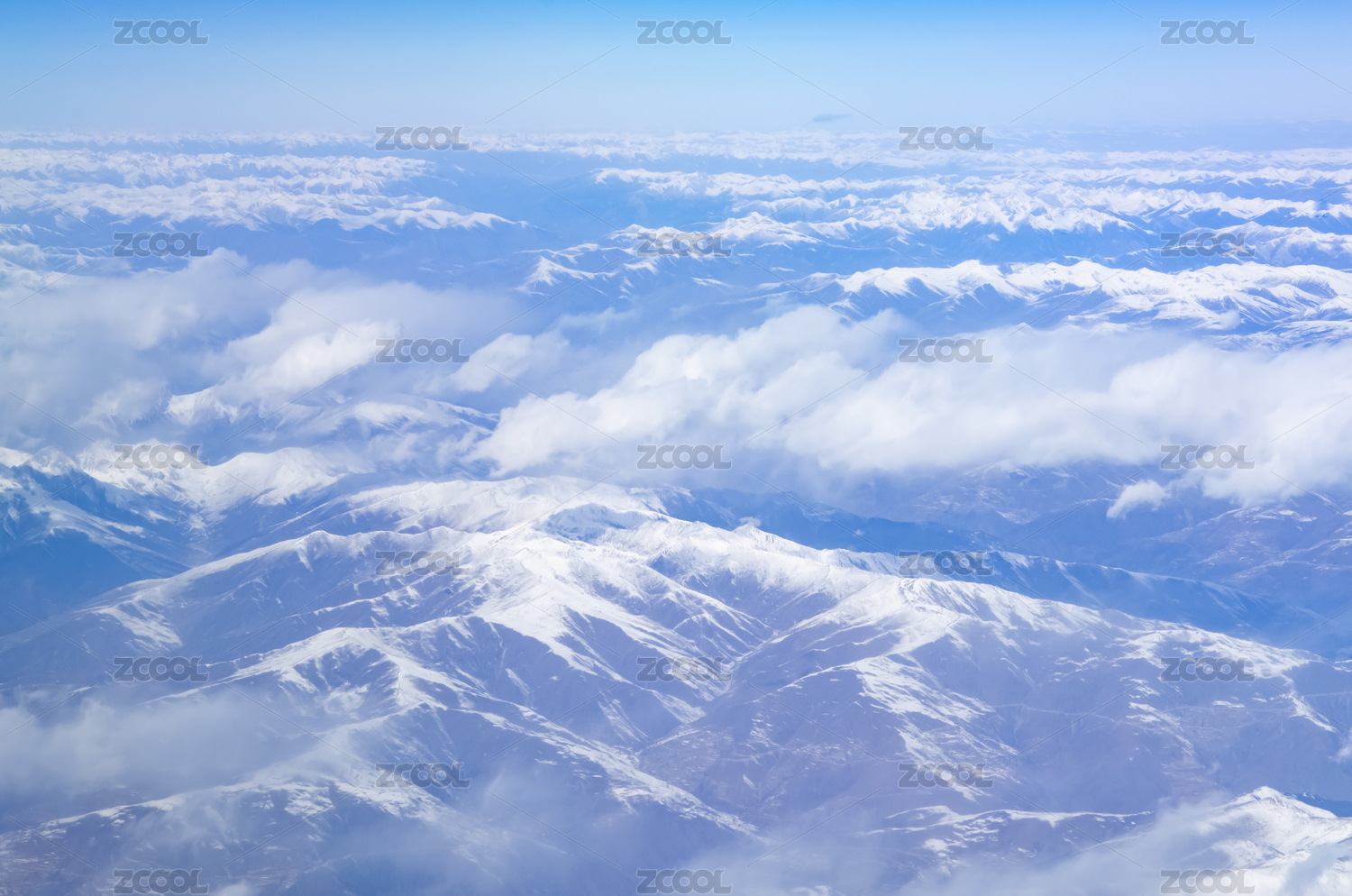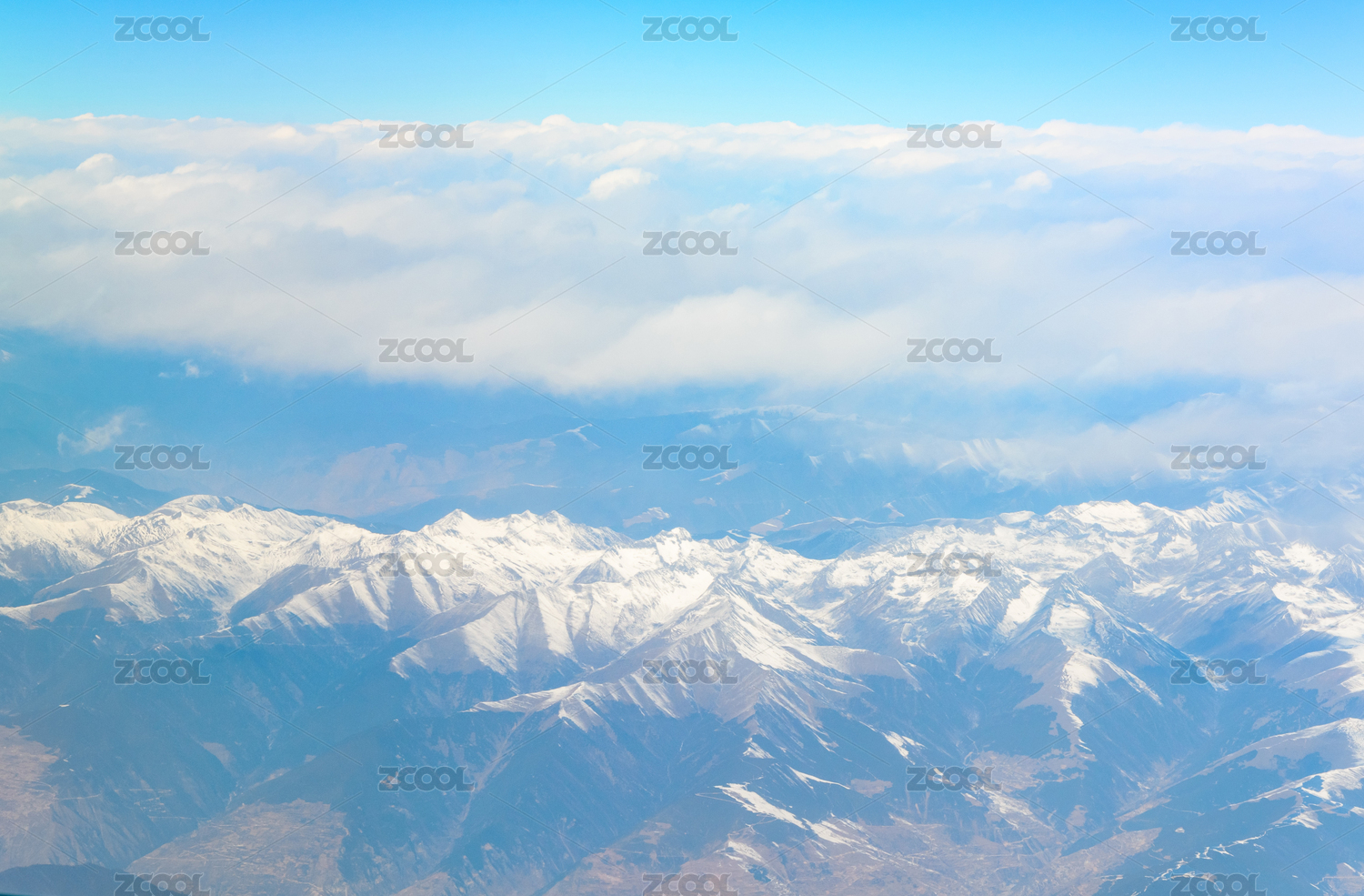 飞机窗外青藏高原连绵群山雪山云海风光