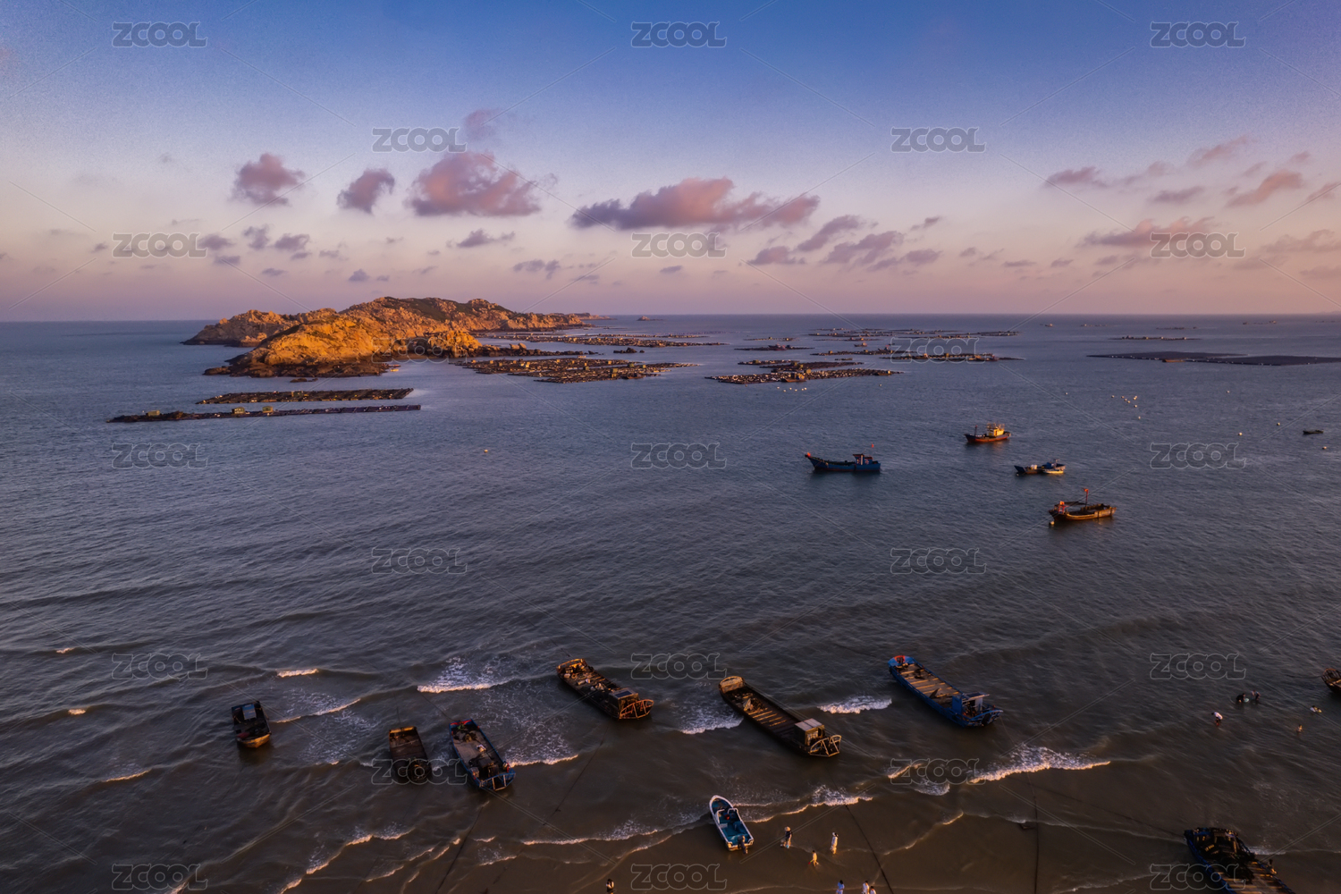 日出福建霞浦沿海渔船海上航行自然风光航拍