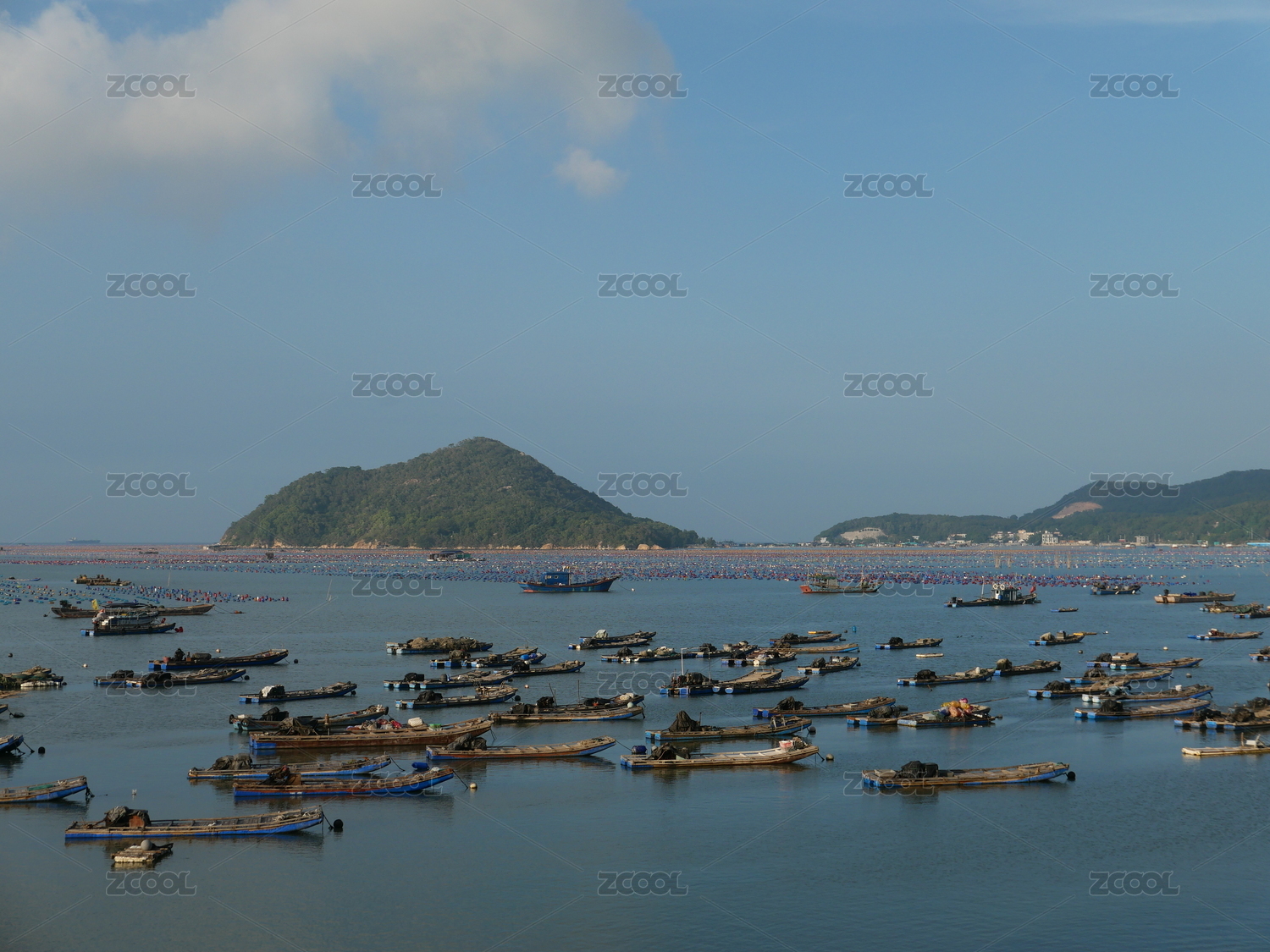 中国舟山枸杞岛元出汗的渔船停泊在碧蓝色的大海上