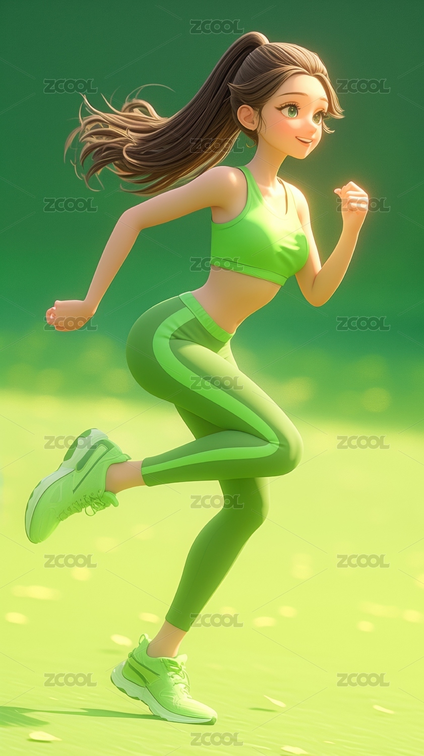 女生,插画,三维图像,正面,休闲,健身,阳光,开心,运动,动感