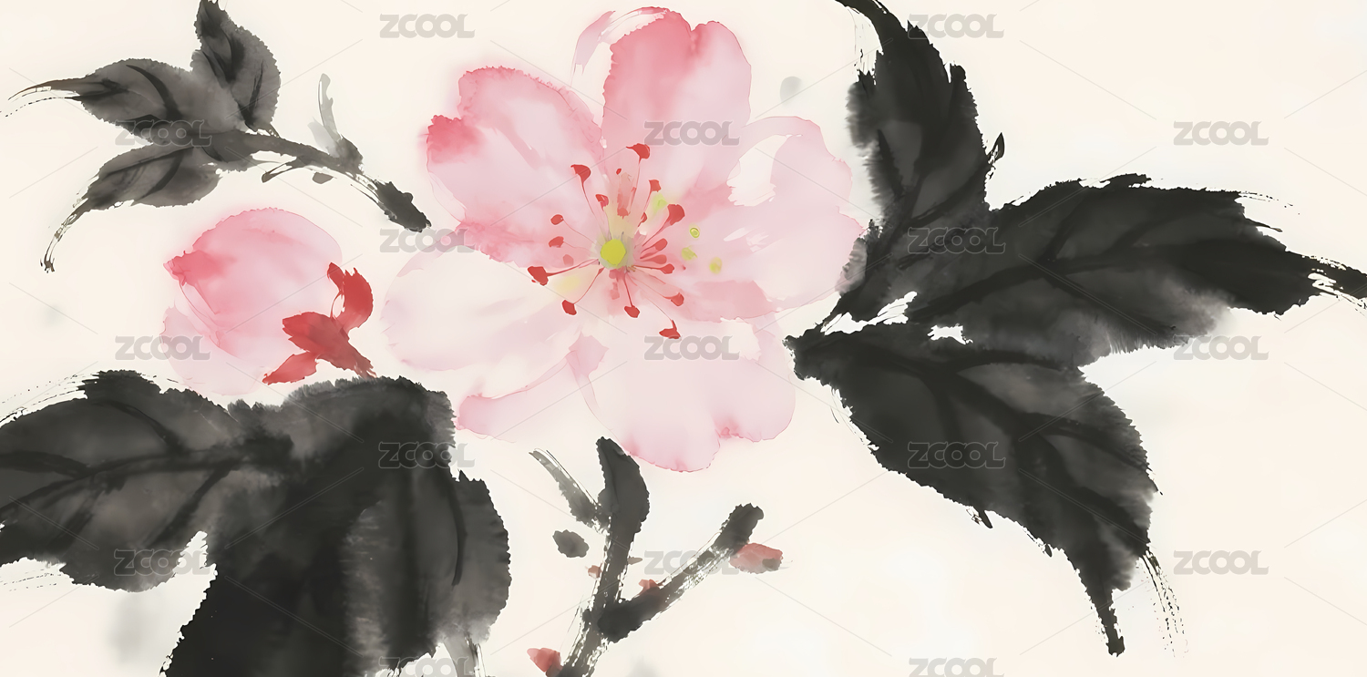 抽象意境水彩画花朵植物装饰画纹理底纹素材