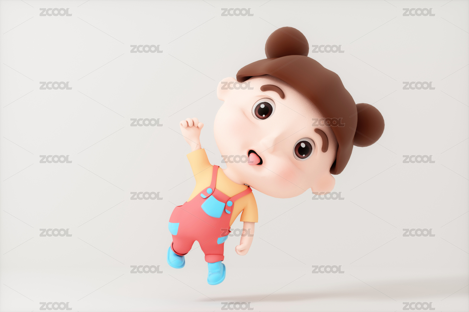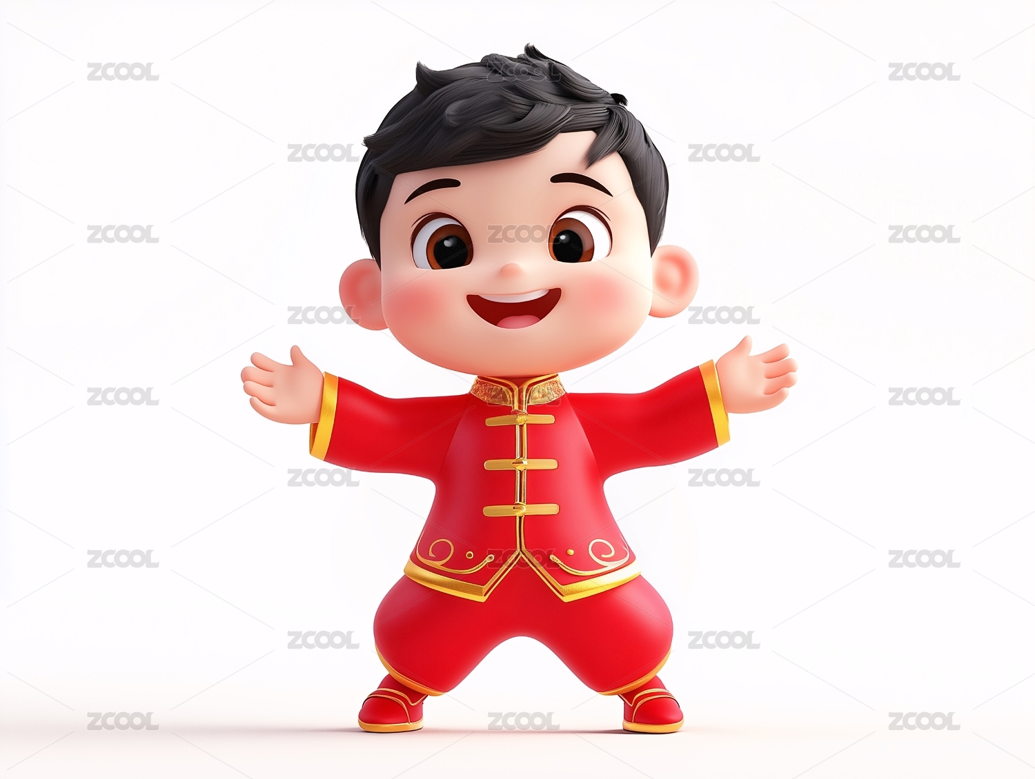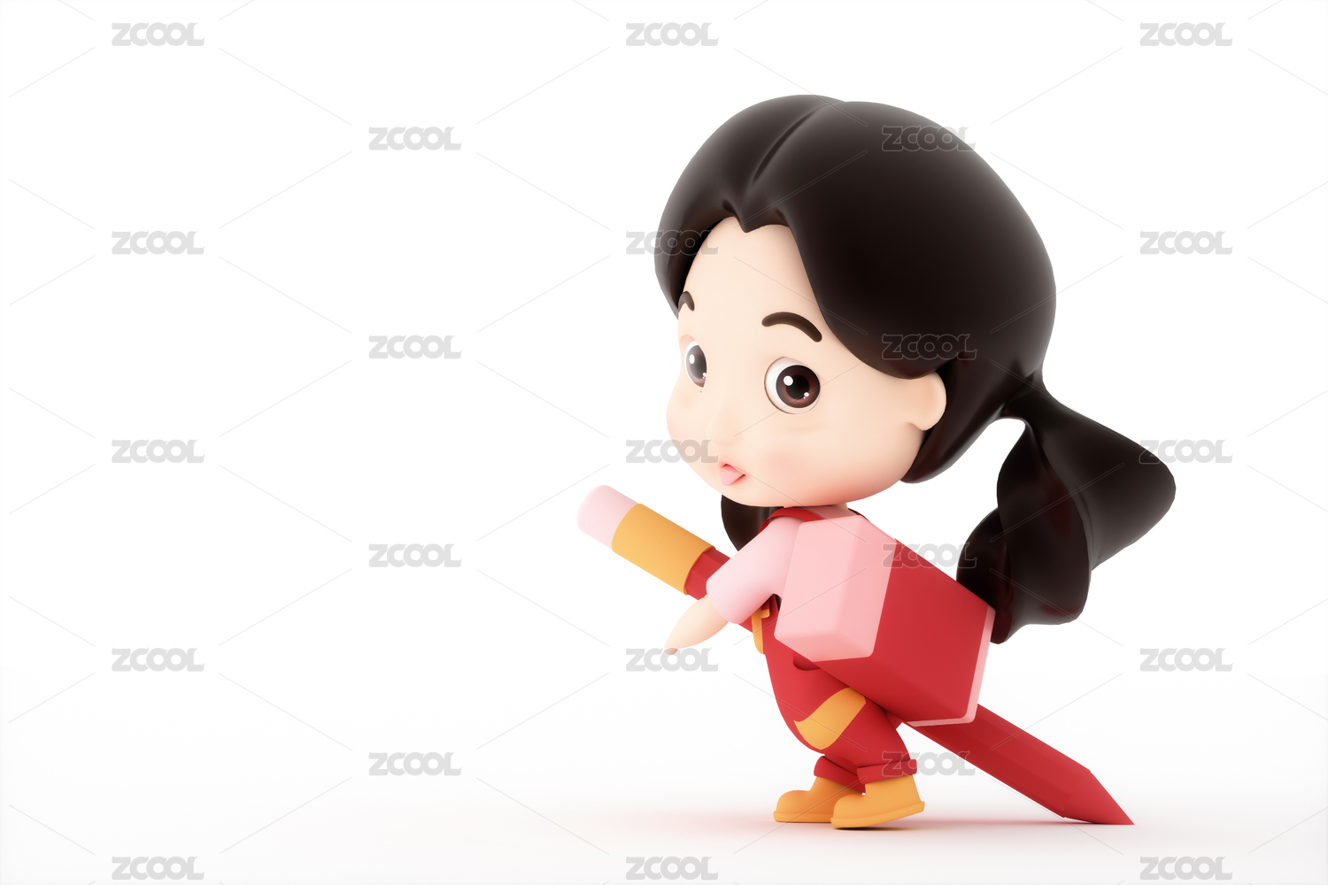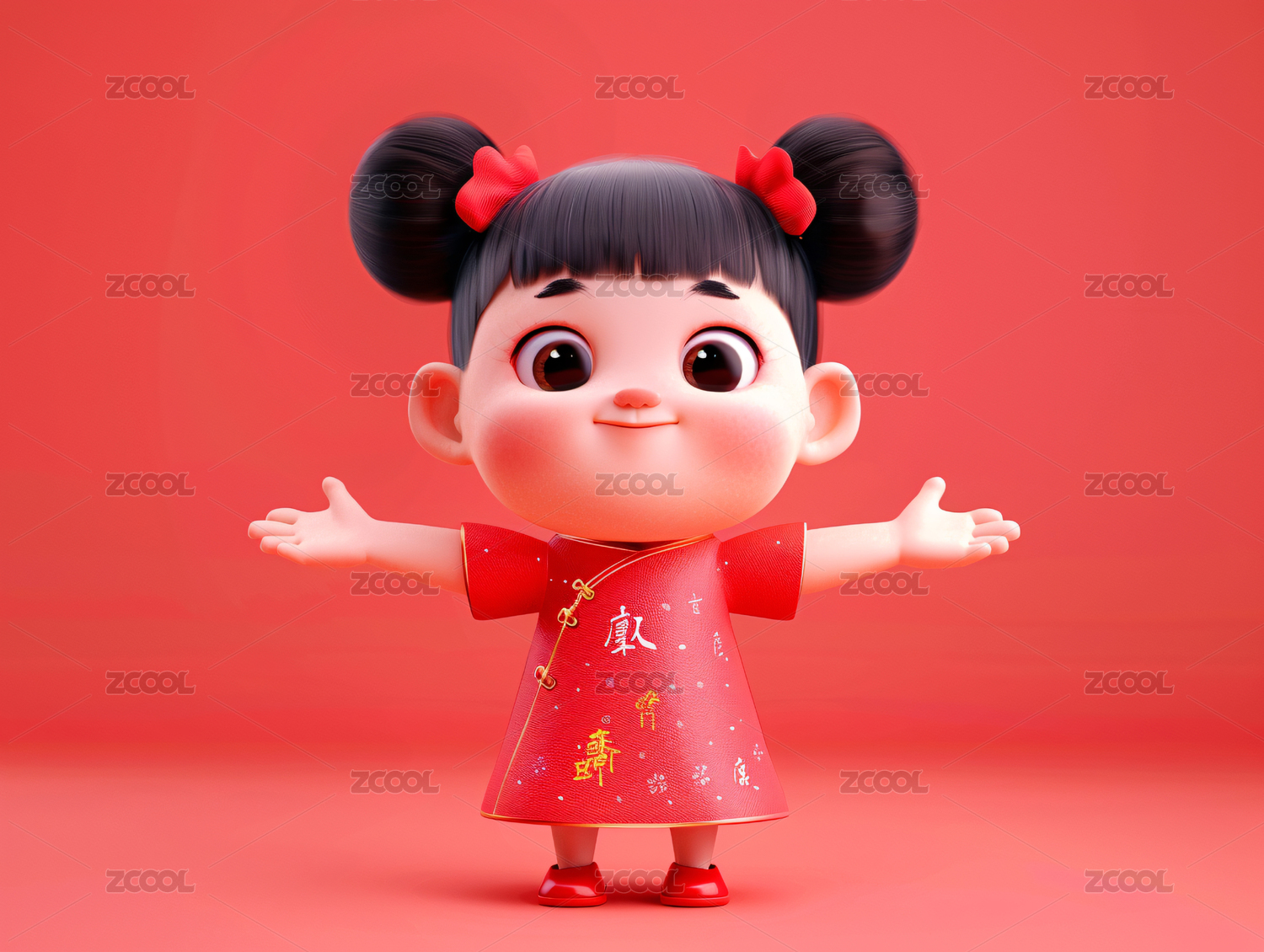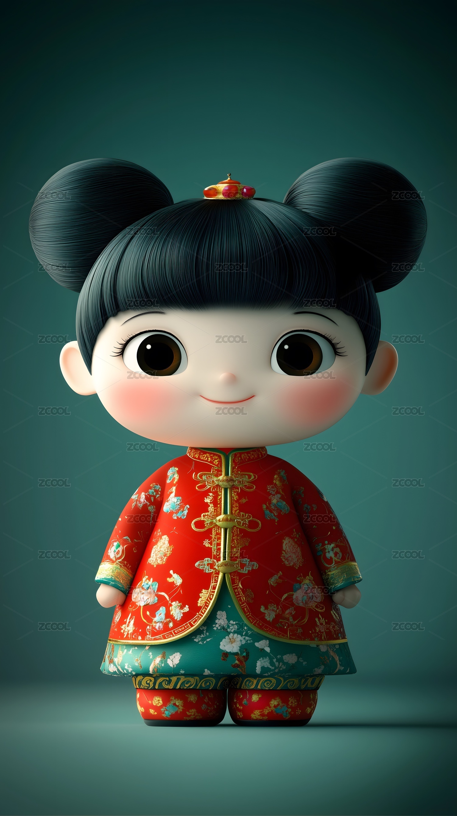 穿着中国传统服饰的可爱卡通3D女孩人偶