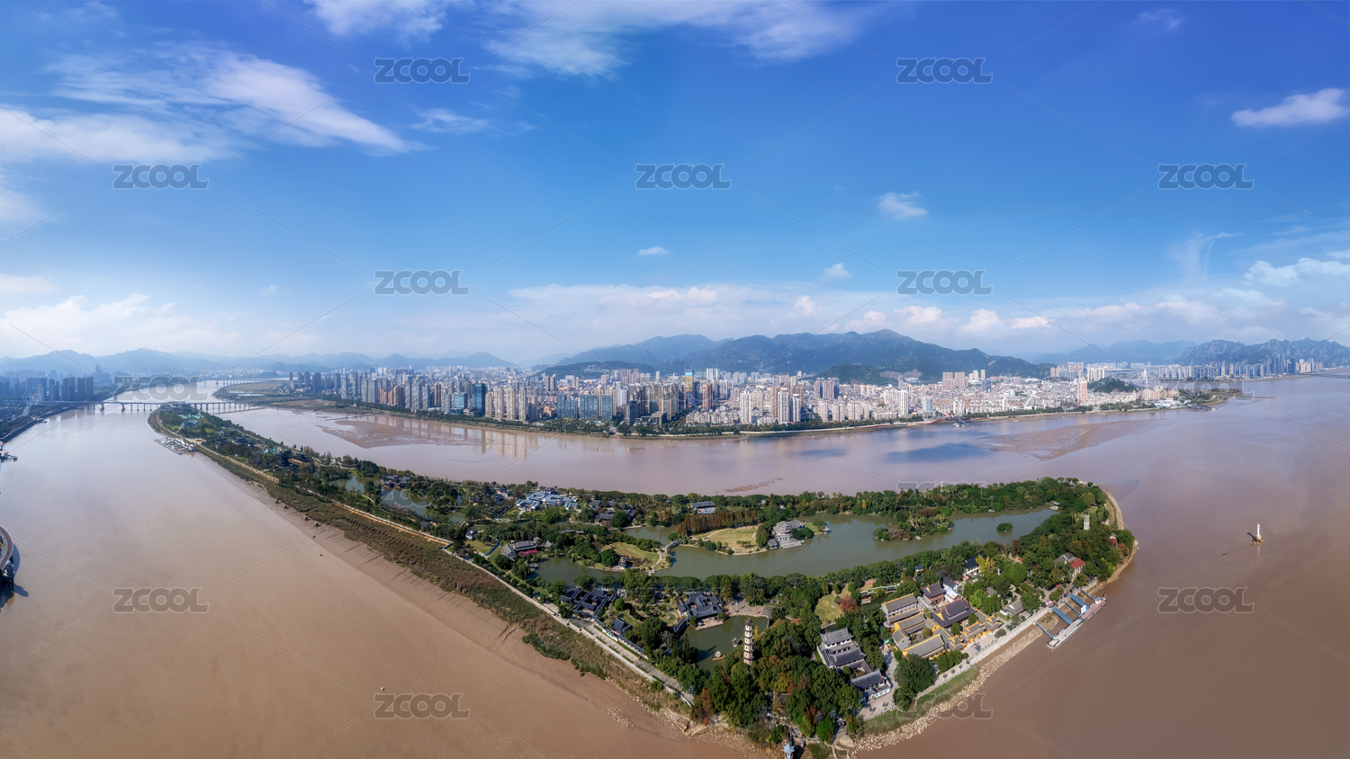 中国湖南长沙湘江橘子洲岳麓山全景图航拍