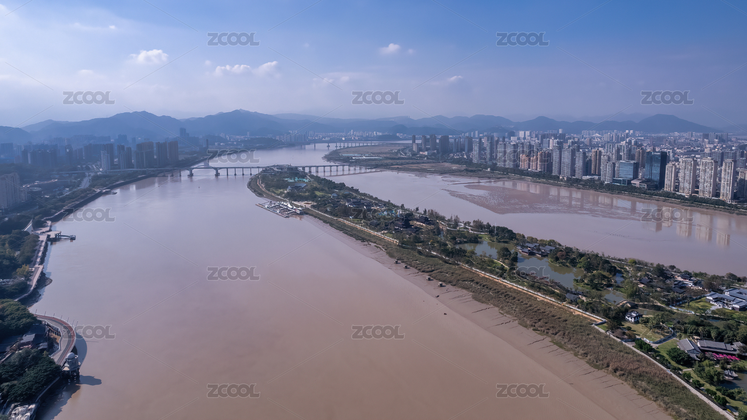航拍福建福州闽江 鳌峰大桥-解放大桥段