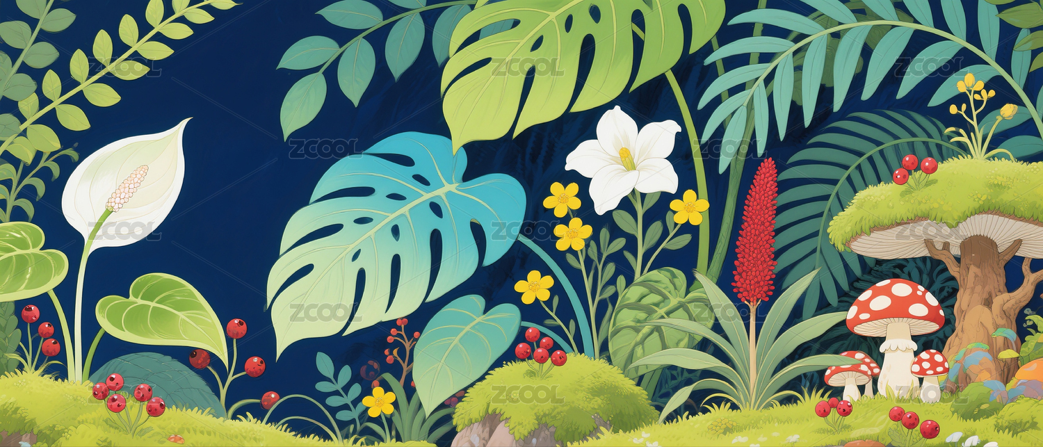 花草植物自然风光插画