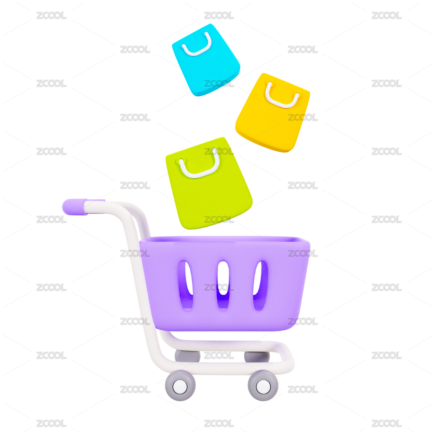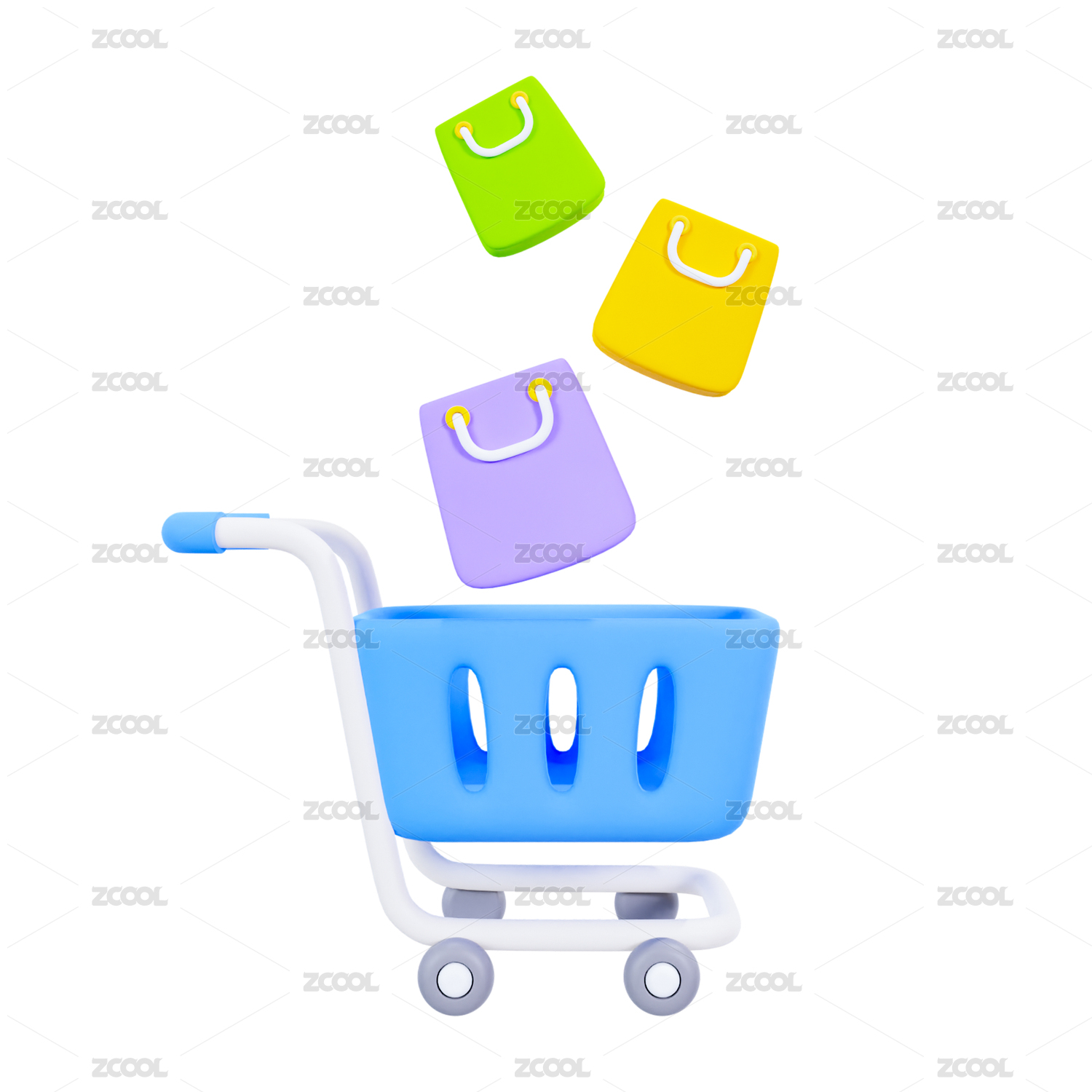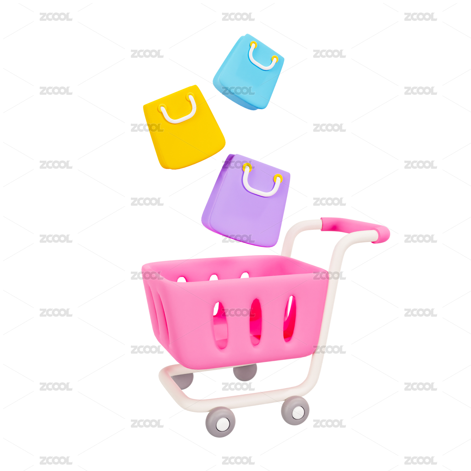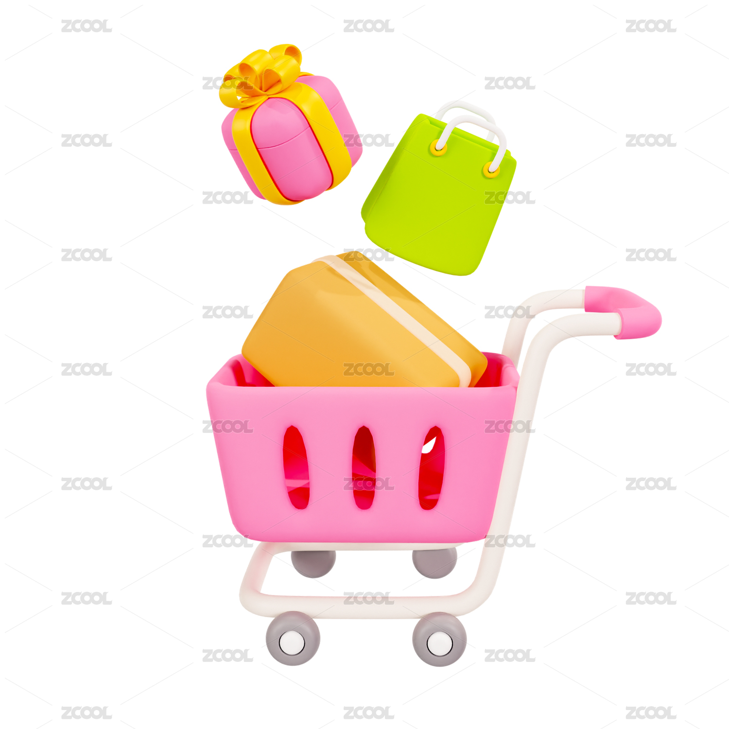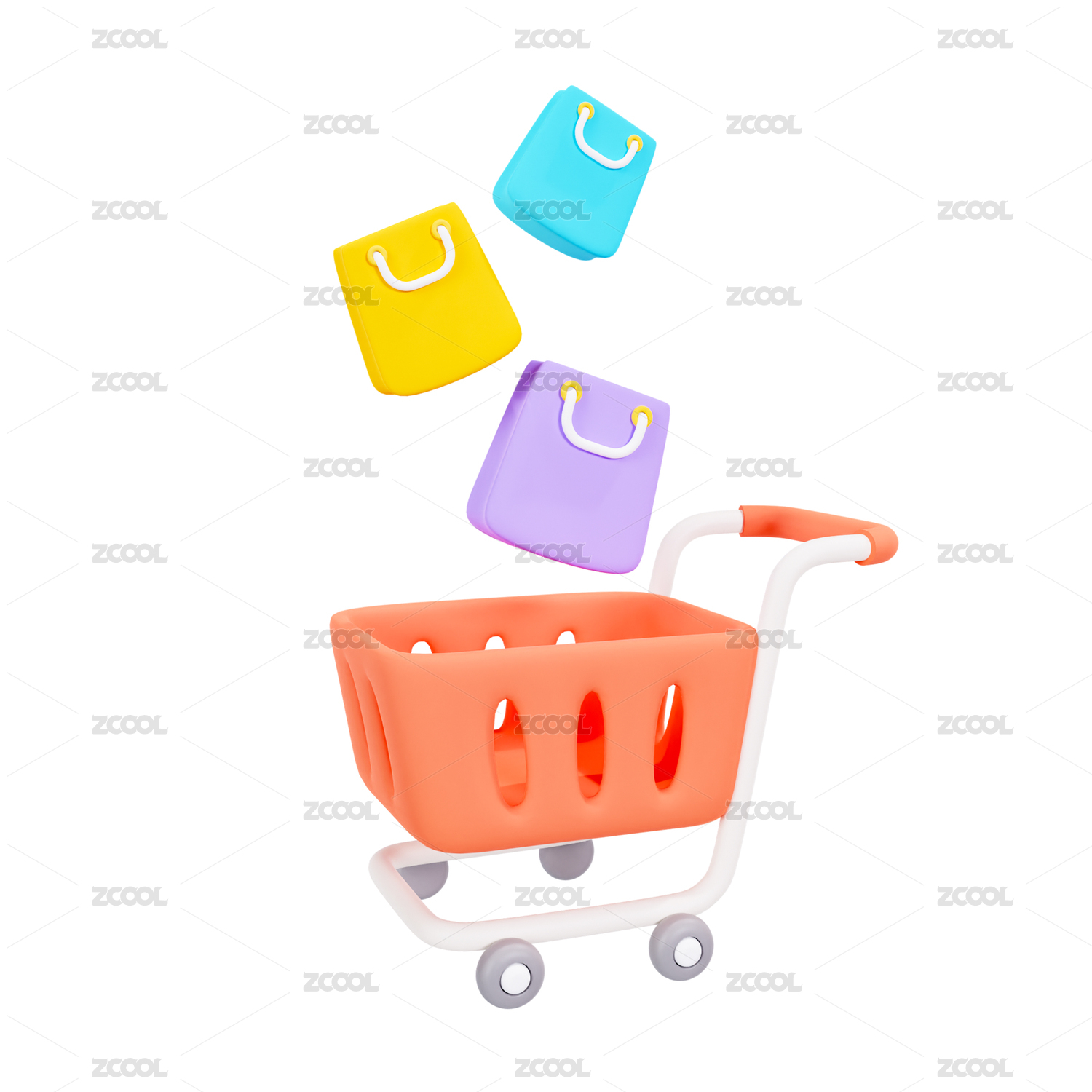 购物车,购物篮,购物,销售,3D,超市,购买,黄色,橙色,节日