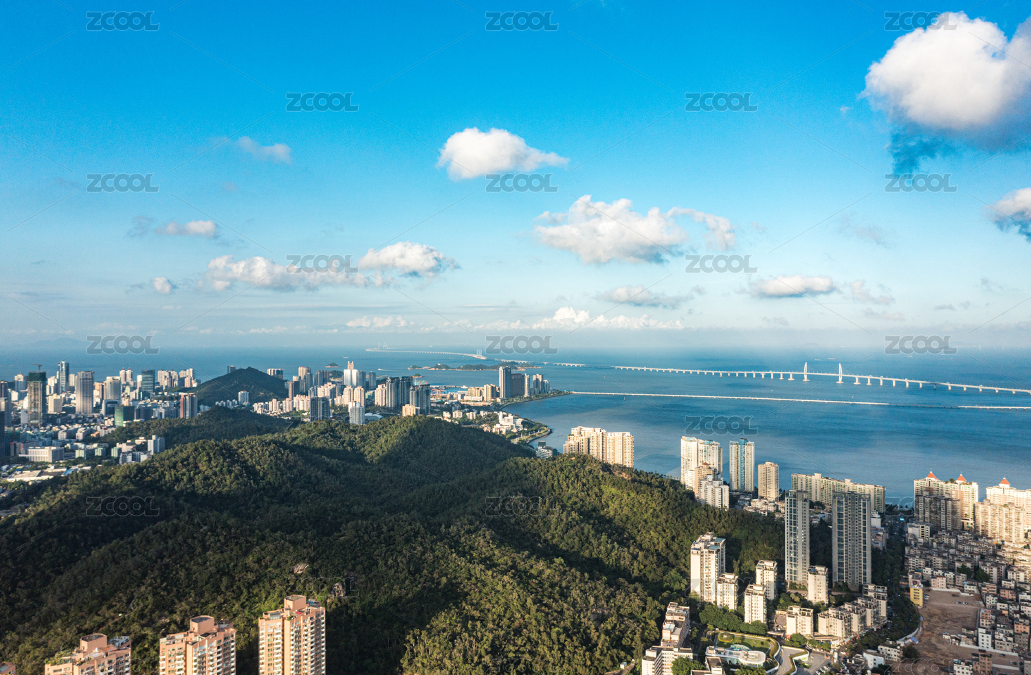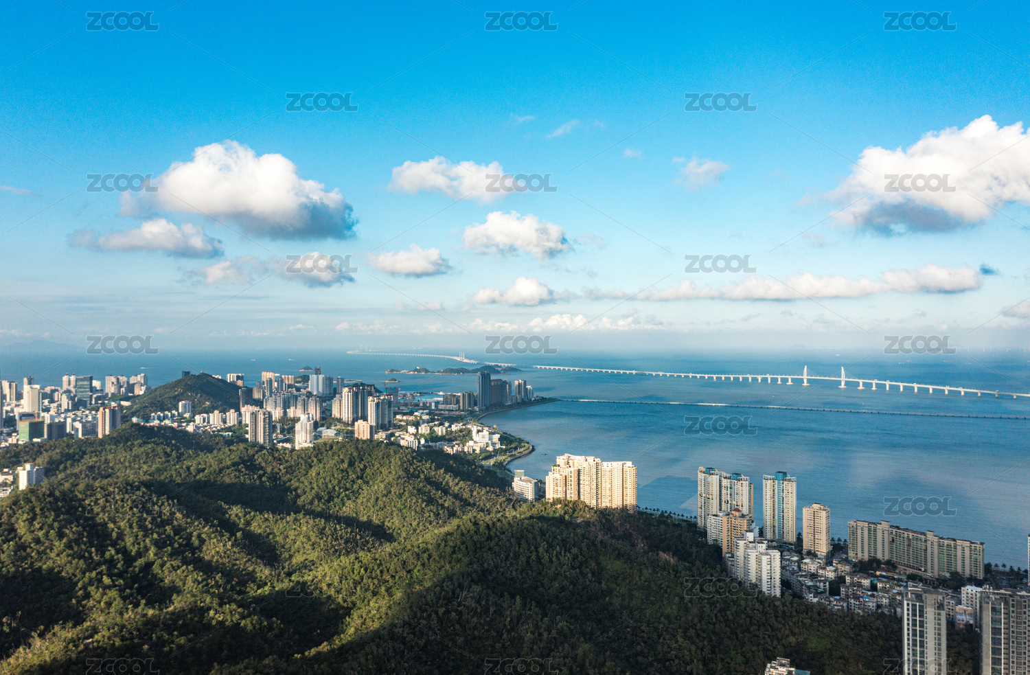 航拍珠海城市风光晴朗天气