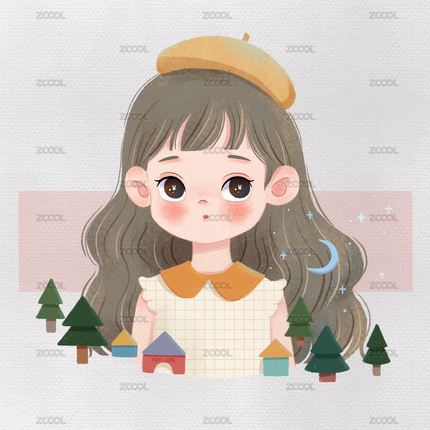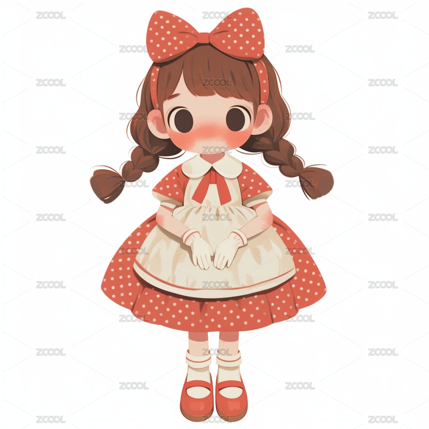 活泼,可爱,女孩,平面,插画,贴纸,川崎,极简