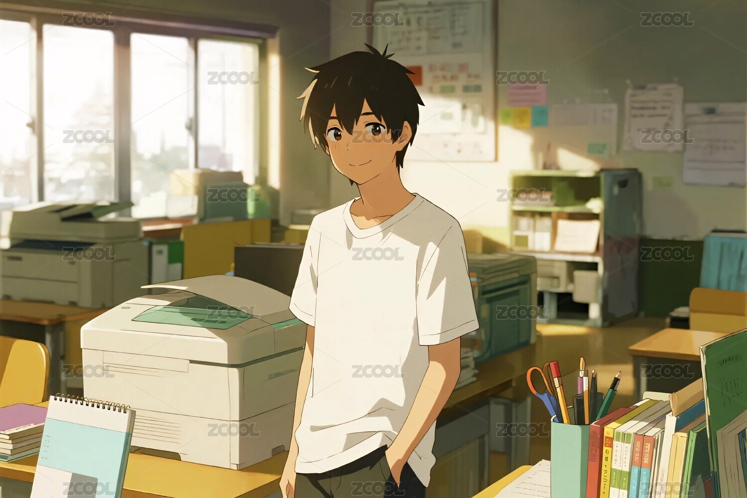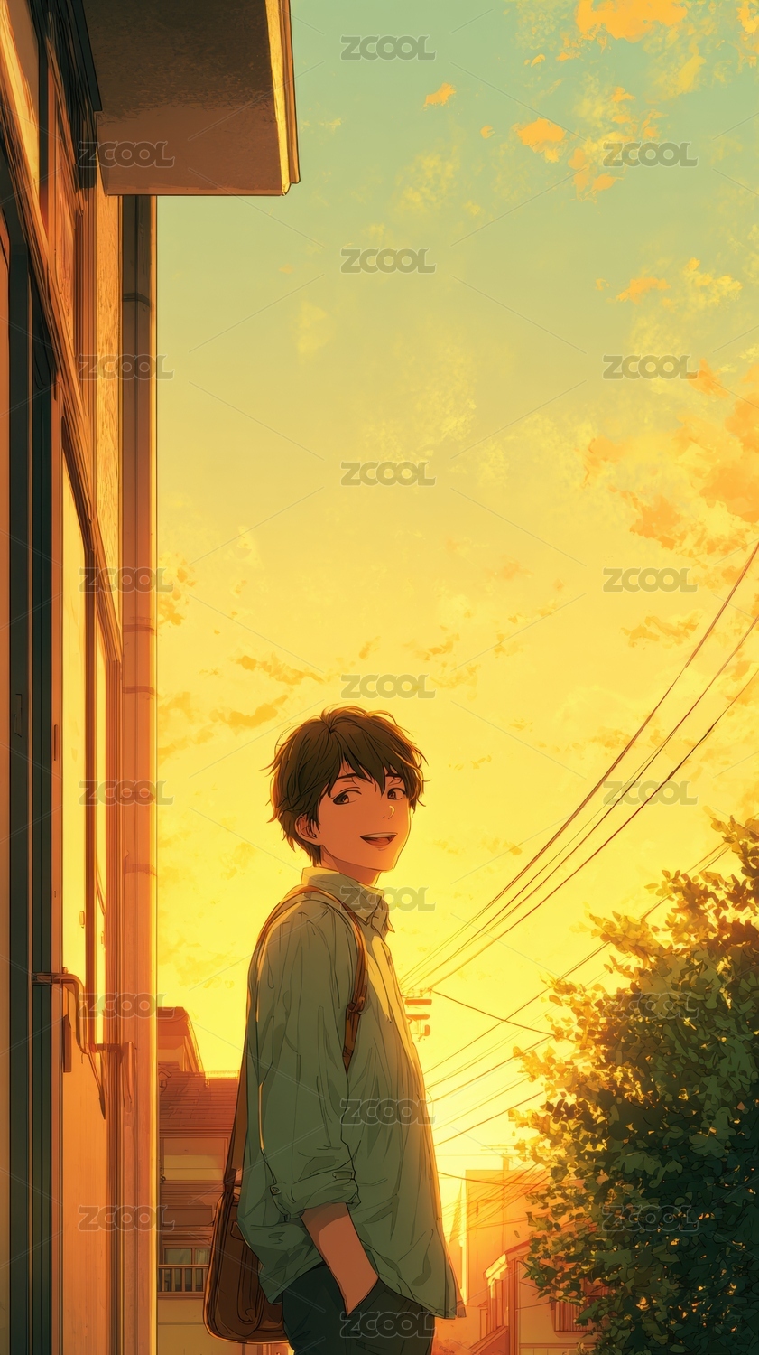 日漫宫崎骏吉卜力风格人物学生男孩背书包