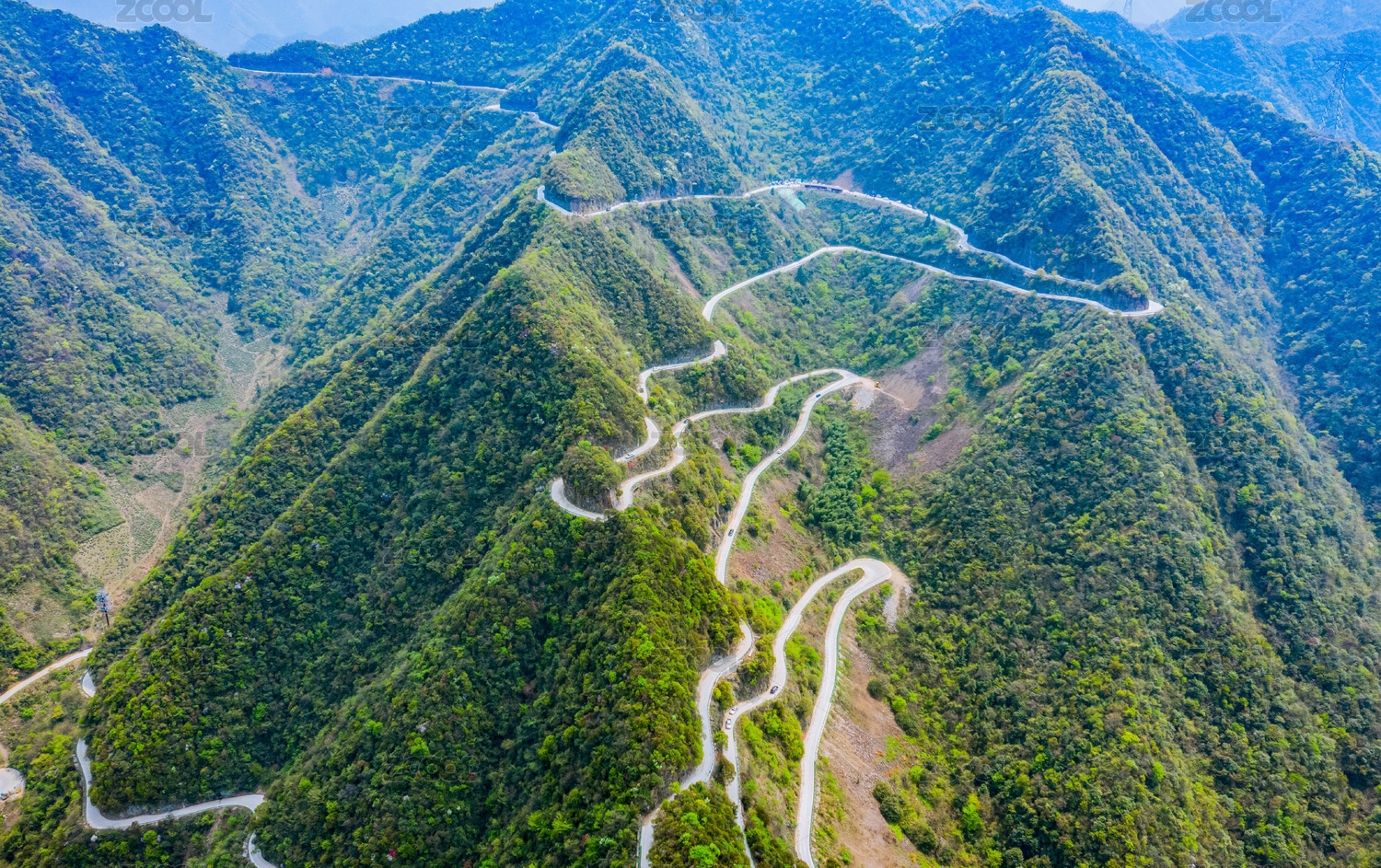 中国湖南溆浦雷峰山金子山盘山公路航拍图