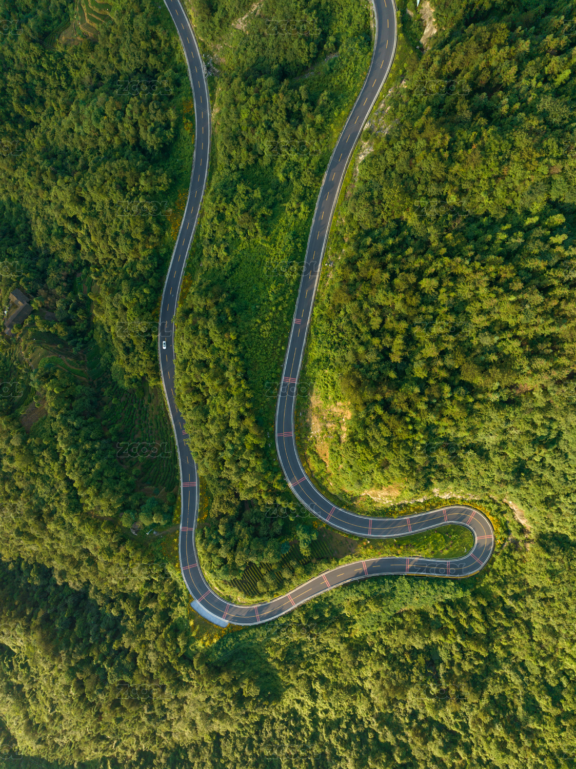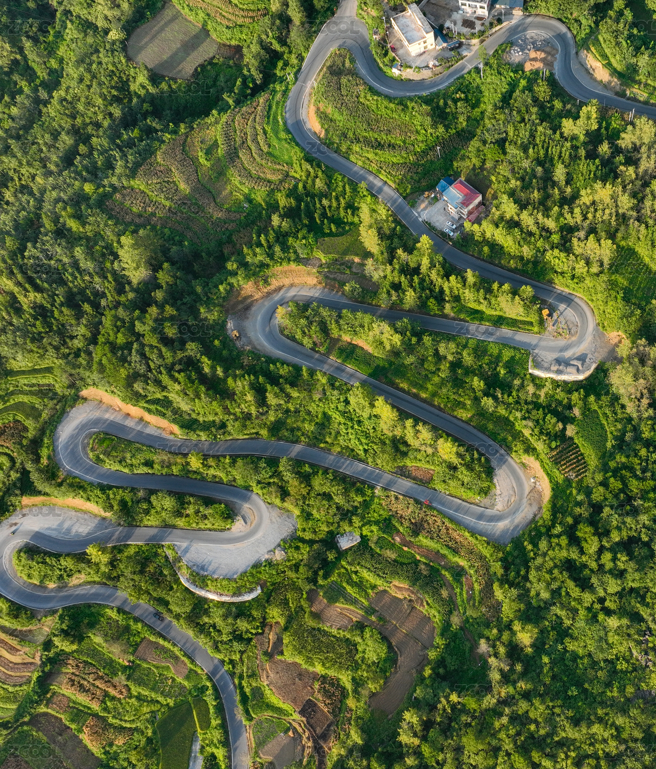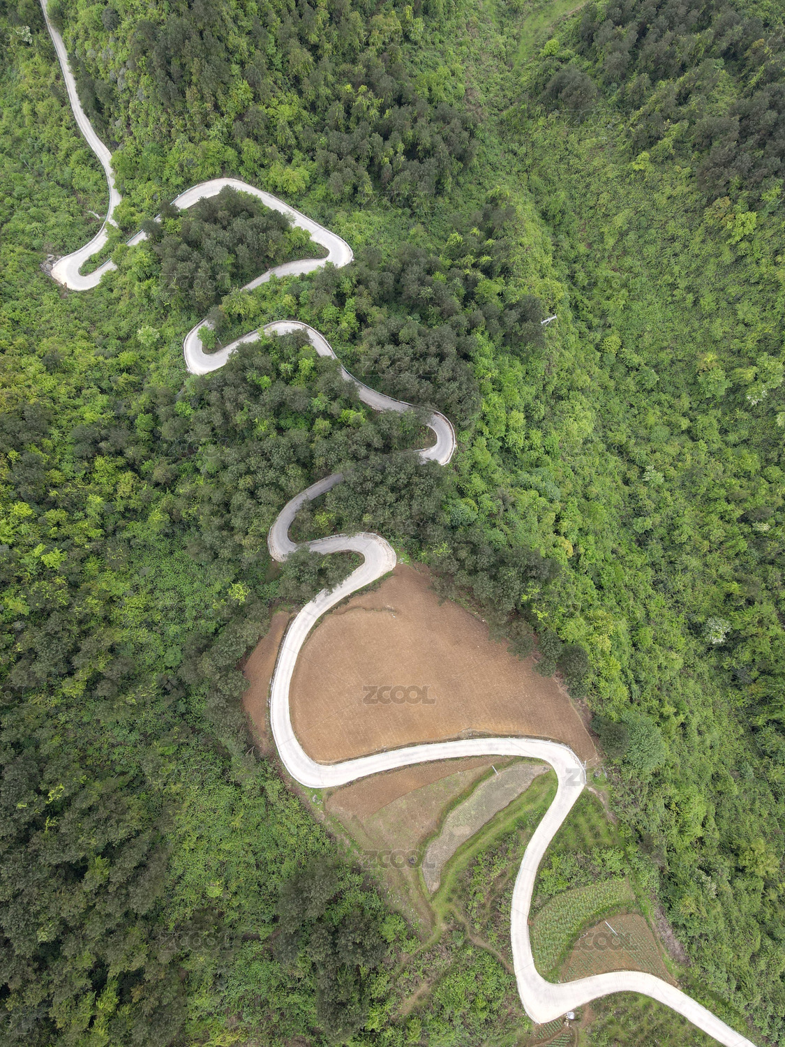 森林蜿蜒山路鸟瞰图