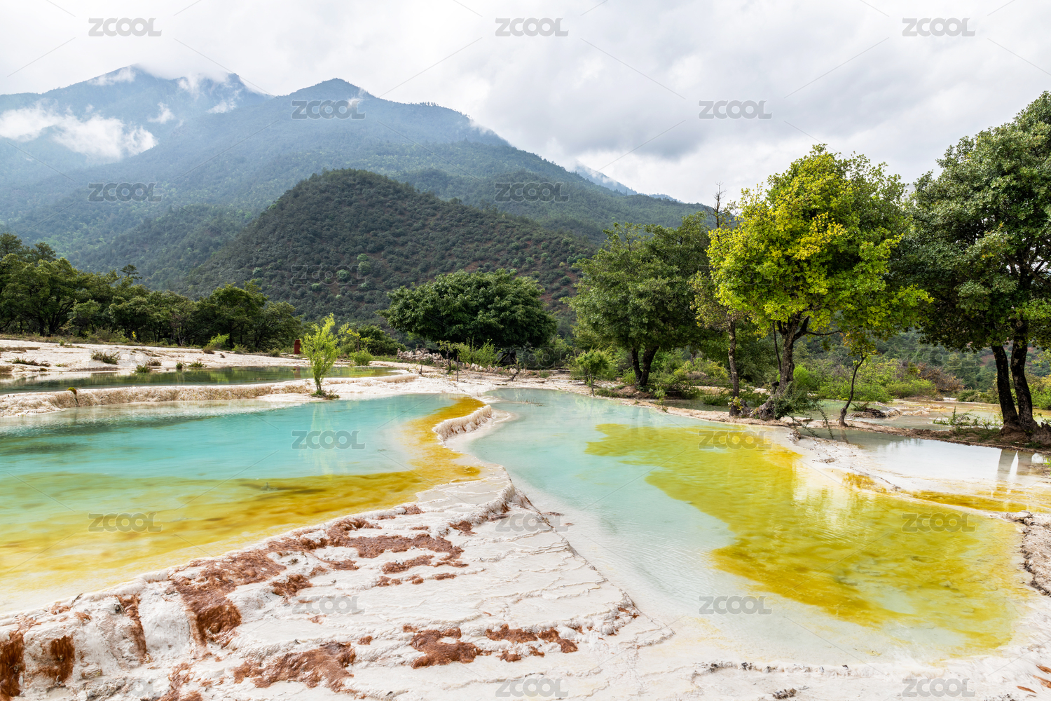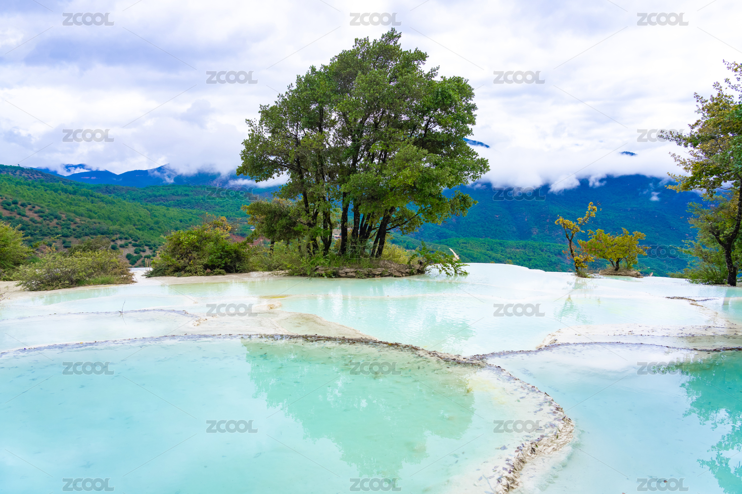 钙华景观,白水台,仙人遗田,华泉台地,碳酸钙,风景,自然,自然美,旅游目的地,人间天堂