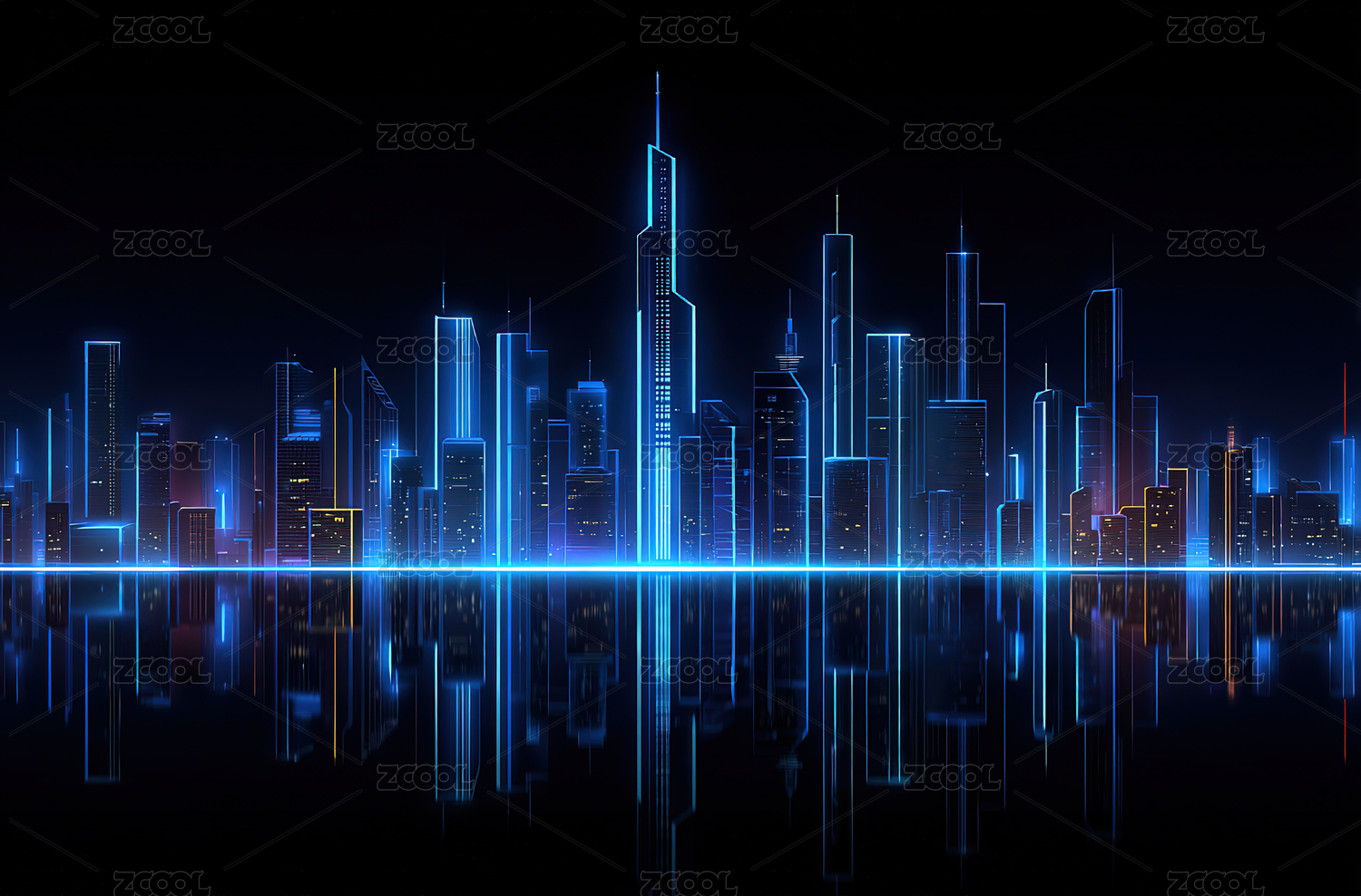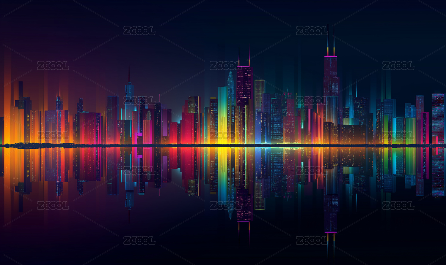 几何矢量城市霓虹灯夜晚城市多彩色天际线