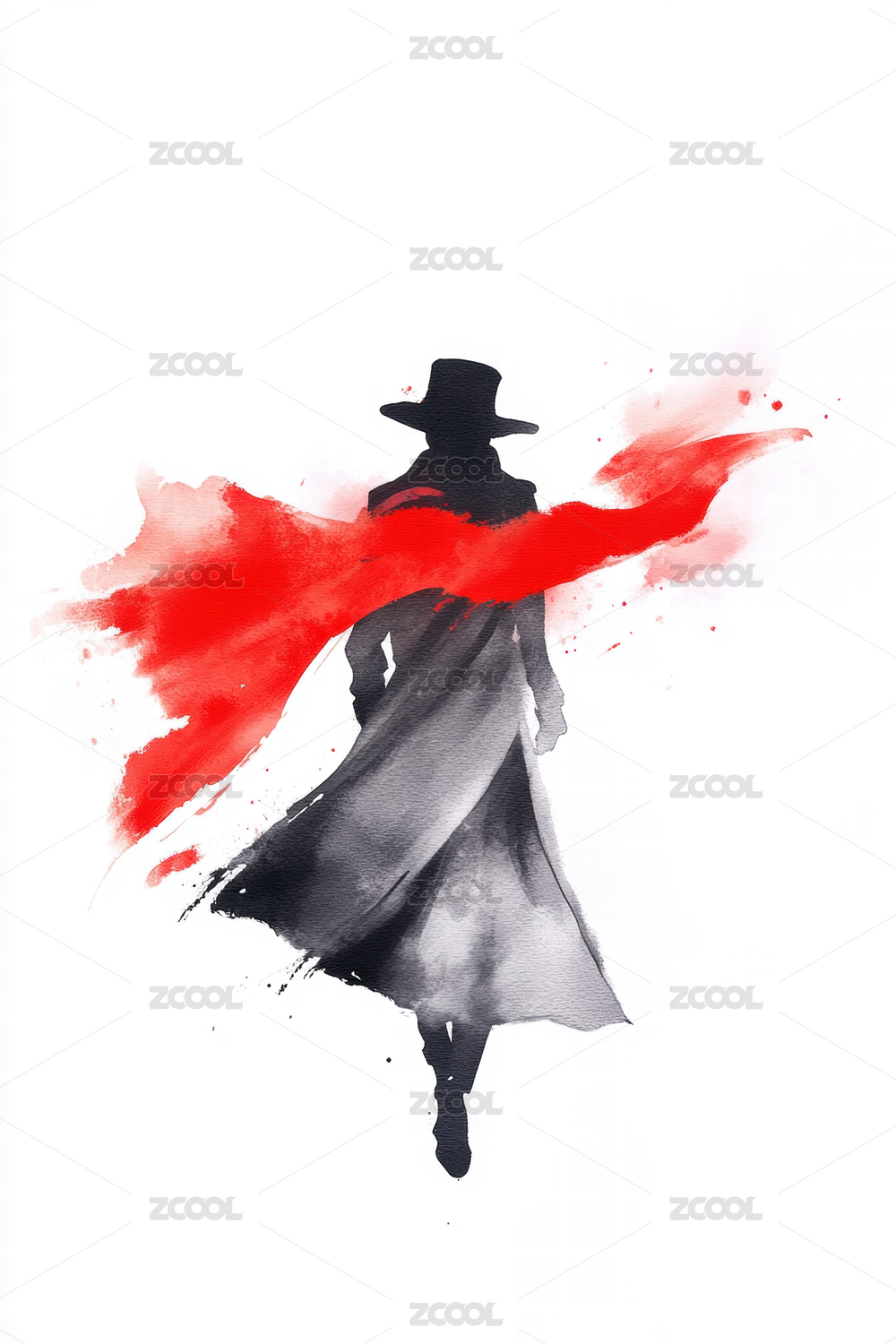水墨侠客人物戴帽子穿披风手拿刀剑的武侠