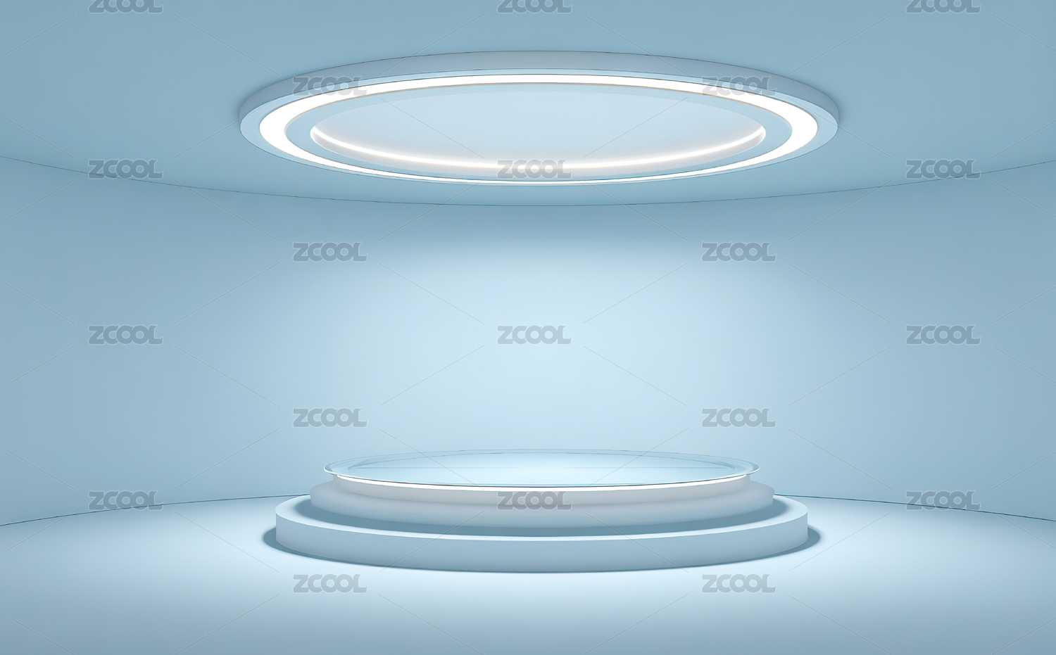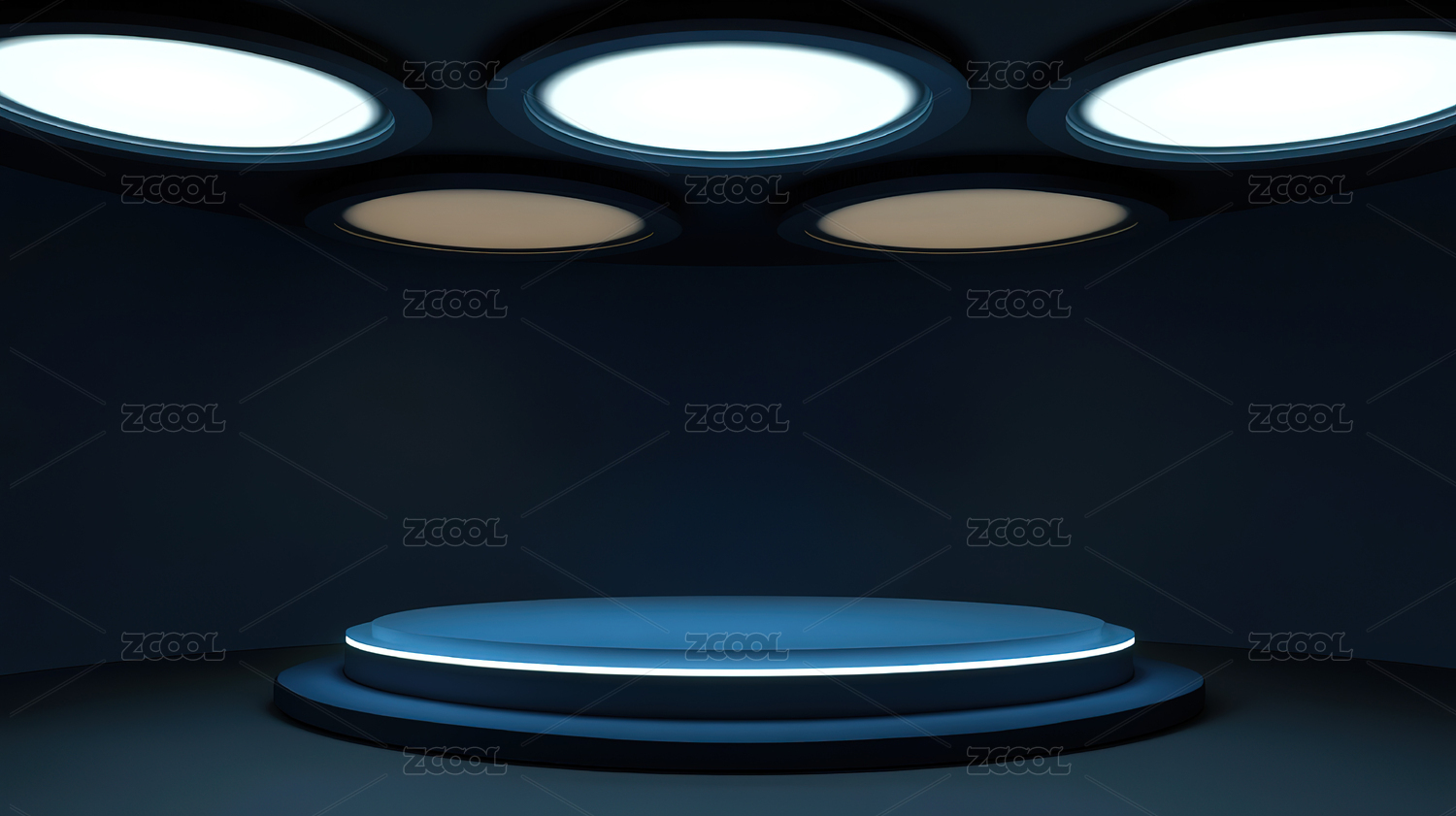 蓝色圆形展台场景