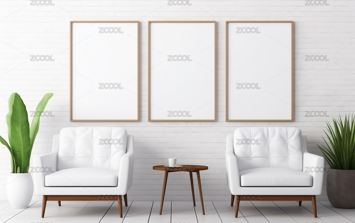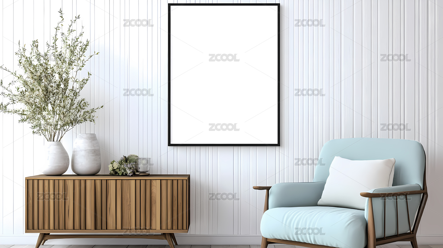 现代房间内部明亮干净设计沙发靠着墙壁背景