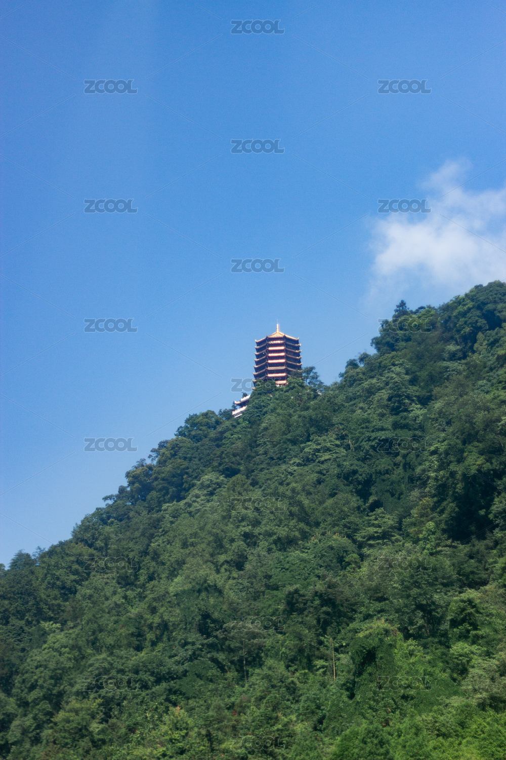 福建省厦门市石室禅院山间古寺与盛开的花树