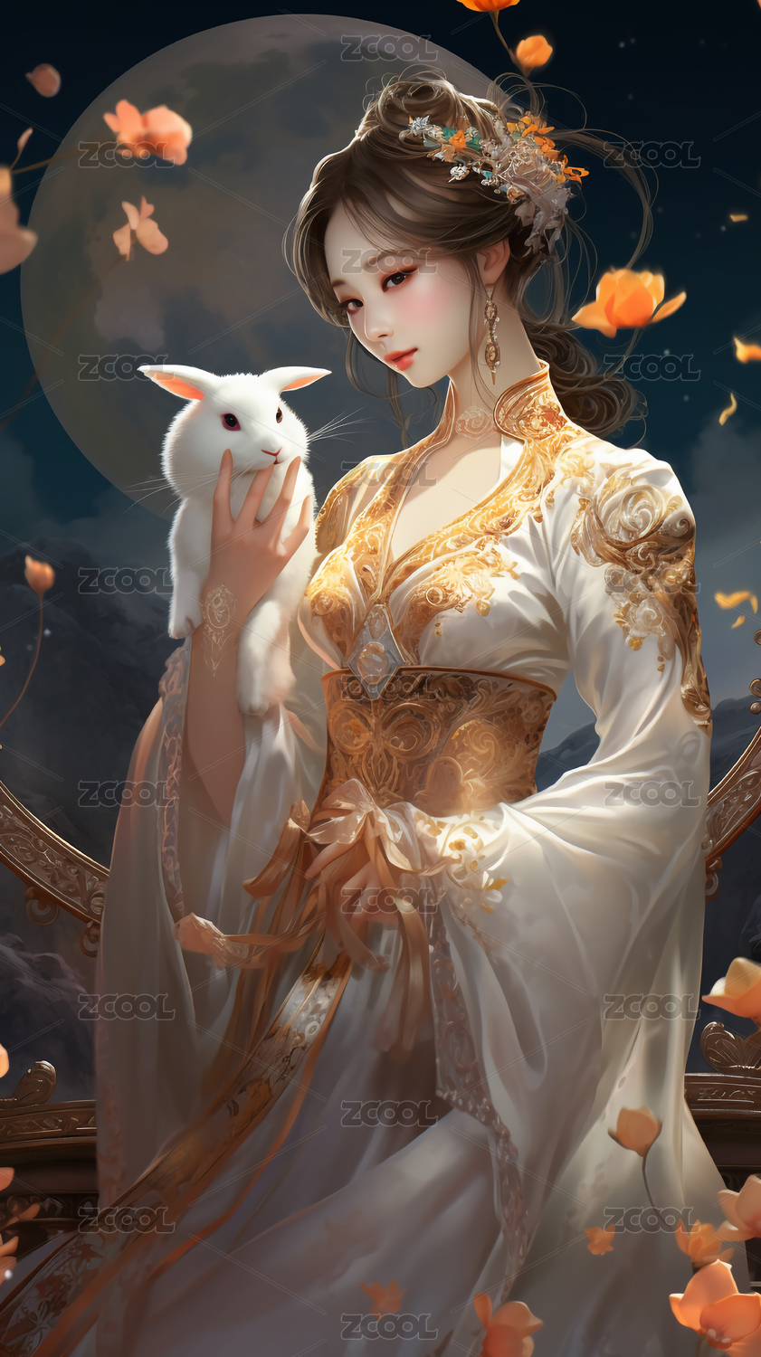 AIGC202402,中秋节,佳节,嫦娥,玉兔,月亮,仙女,神话,美丽,故事