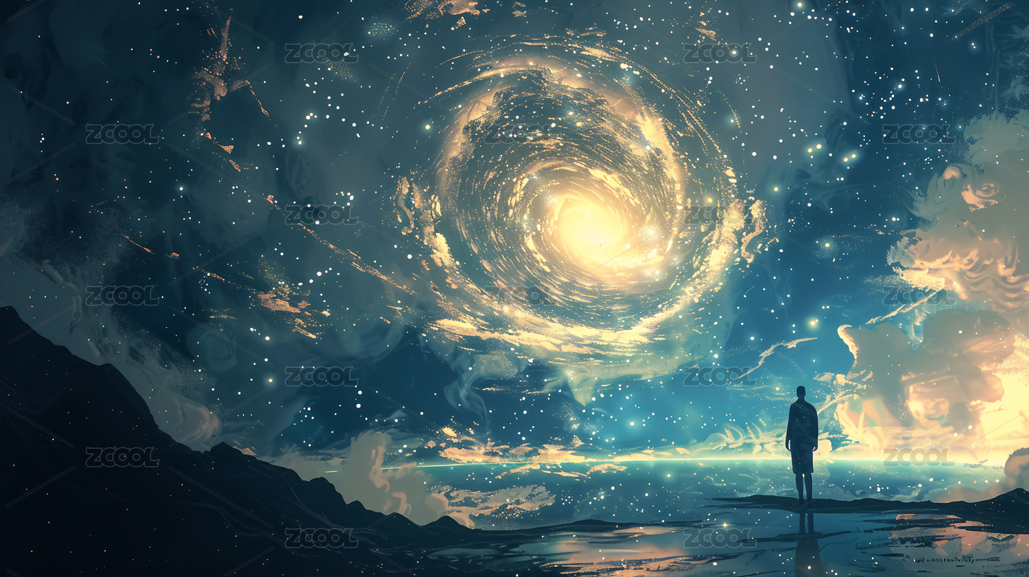 梦幻,唯美,星空,夜晚,绚丽,漩涡,螺旋,星光,星轨,超现实