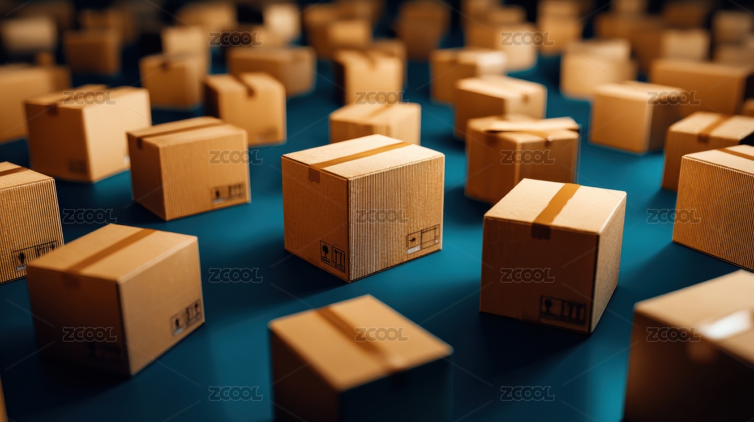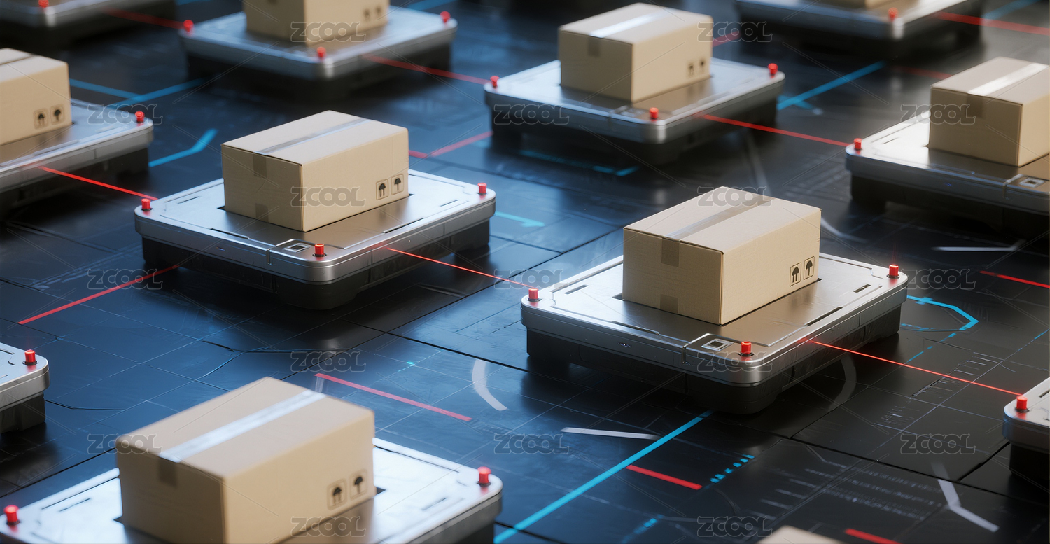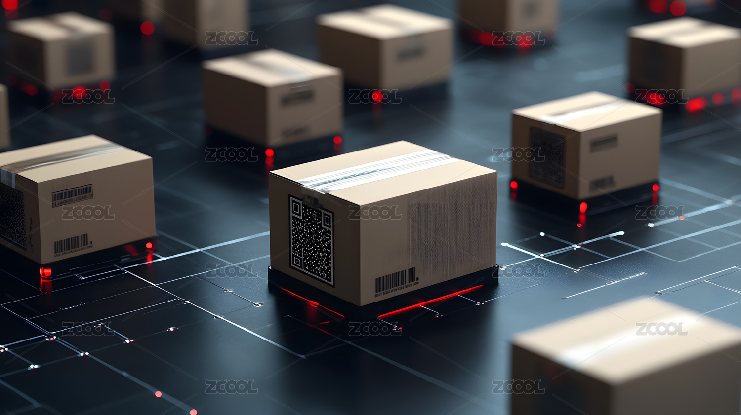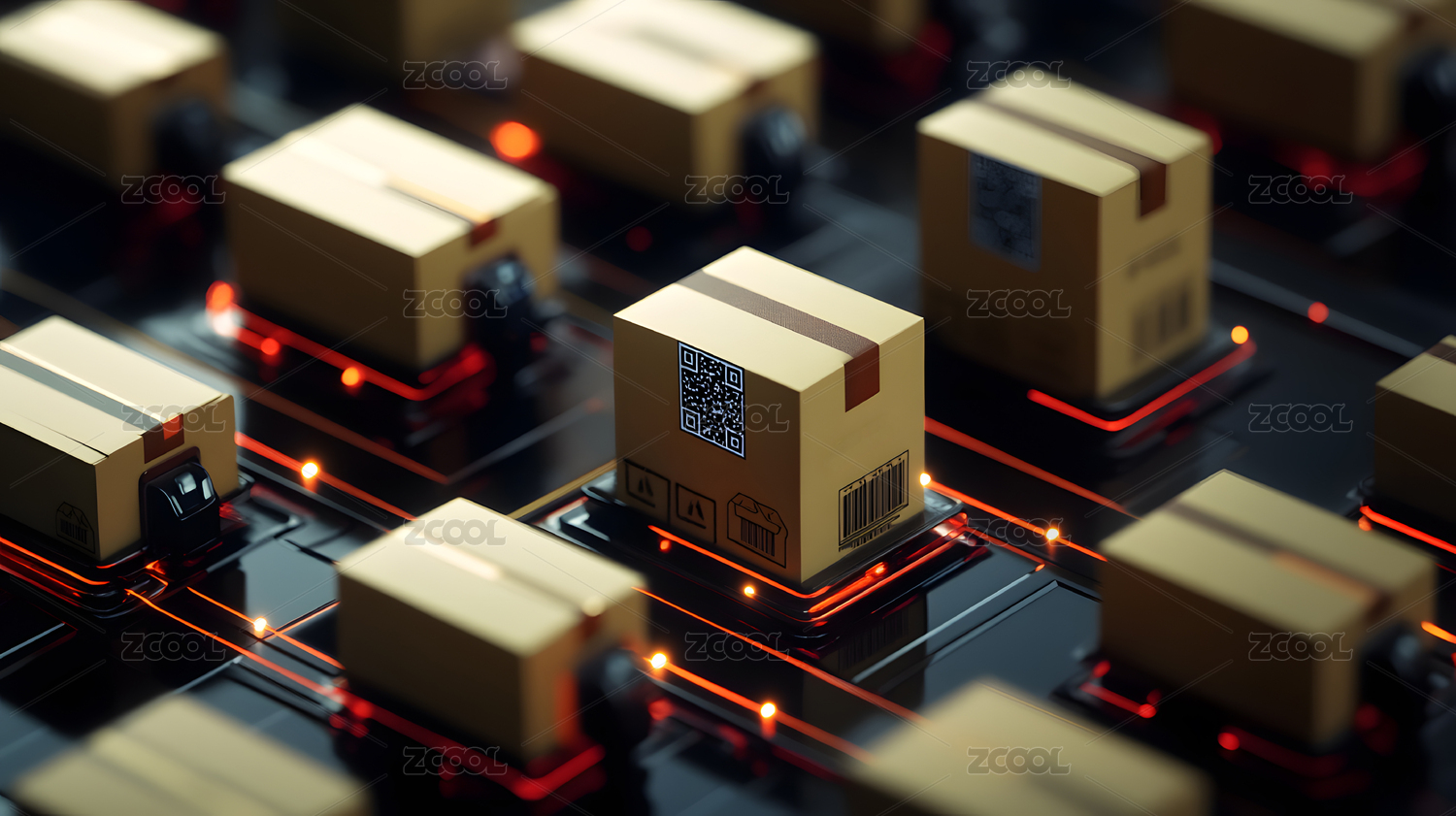 快递包裹在高科技的环境下运输,网上购物,物流自动化管理理念。