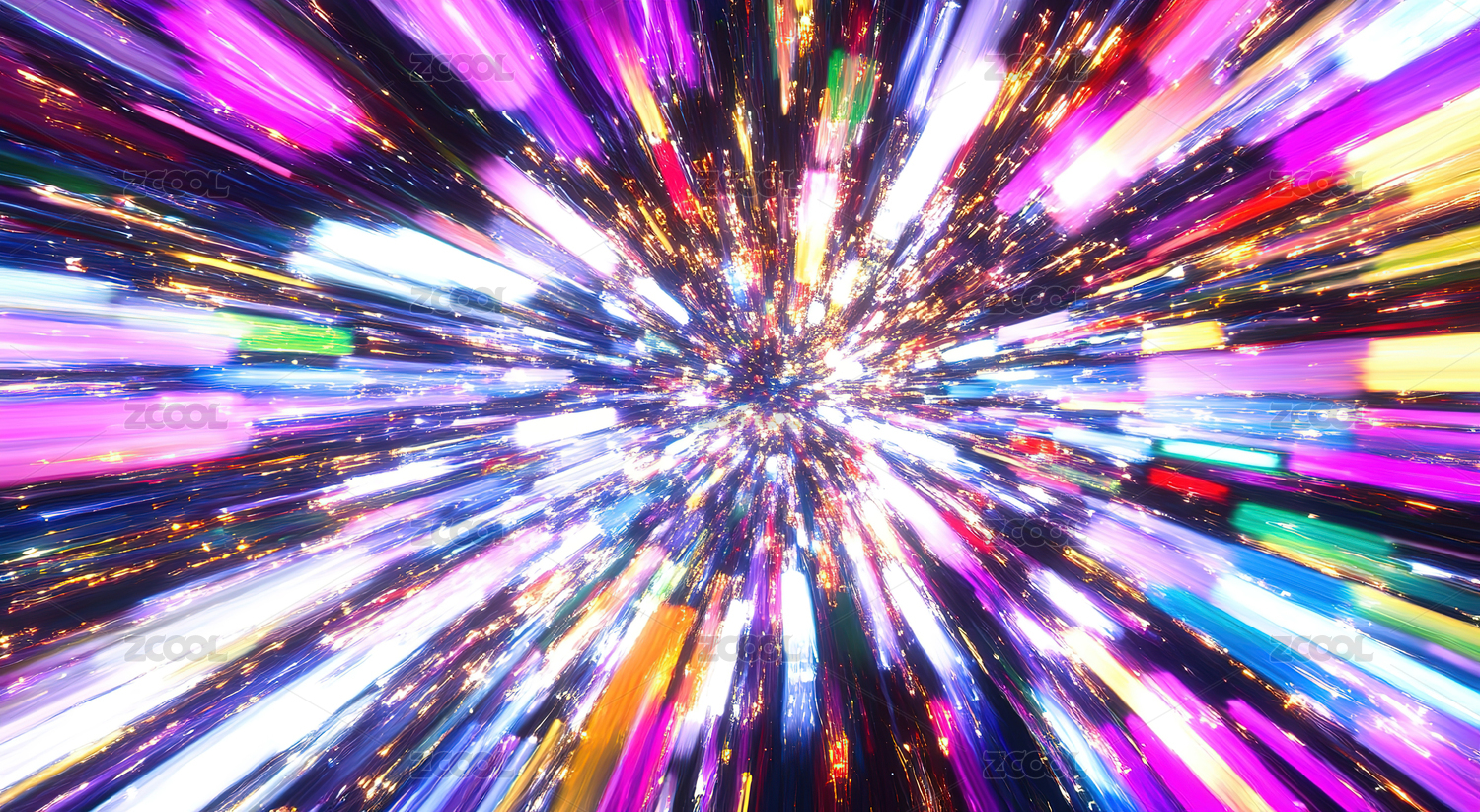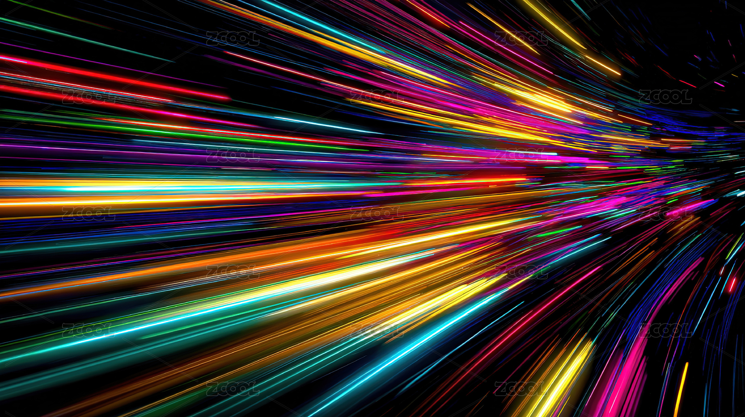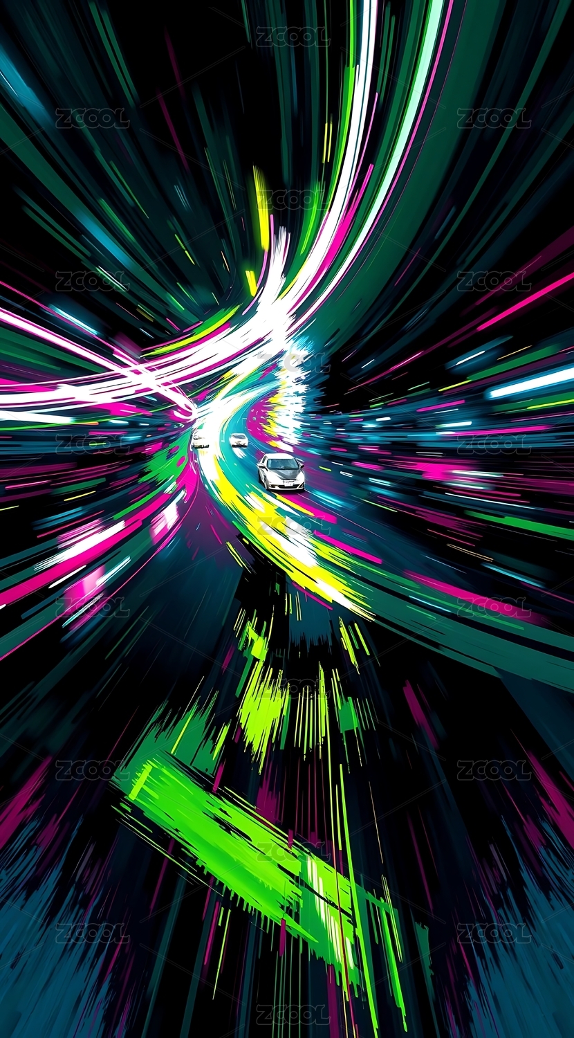 赛博朋克荧光色五彩灯带隧道通道3D插画