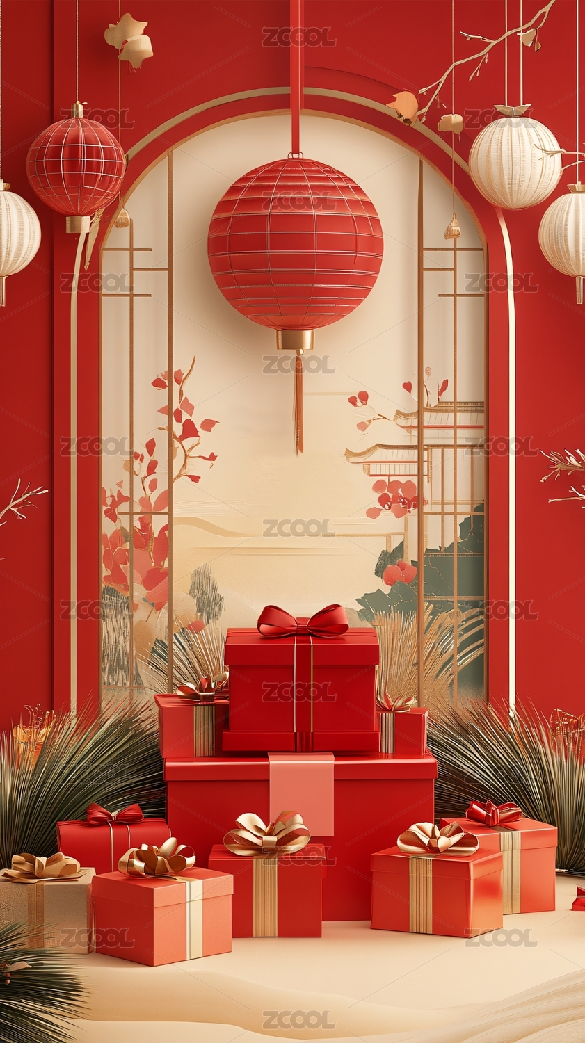 新年,春节,喜庆,红色,电商,节日,场景,背景,花,梅花