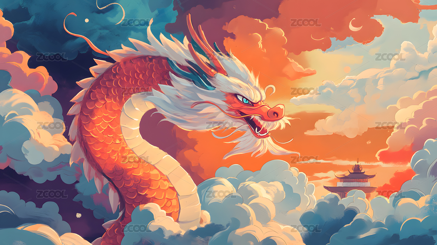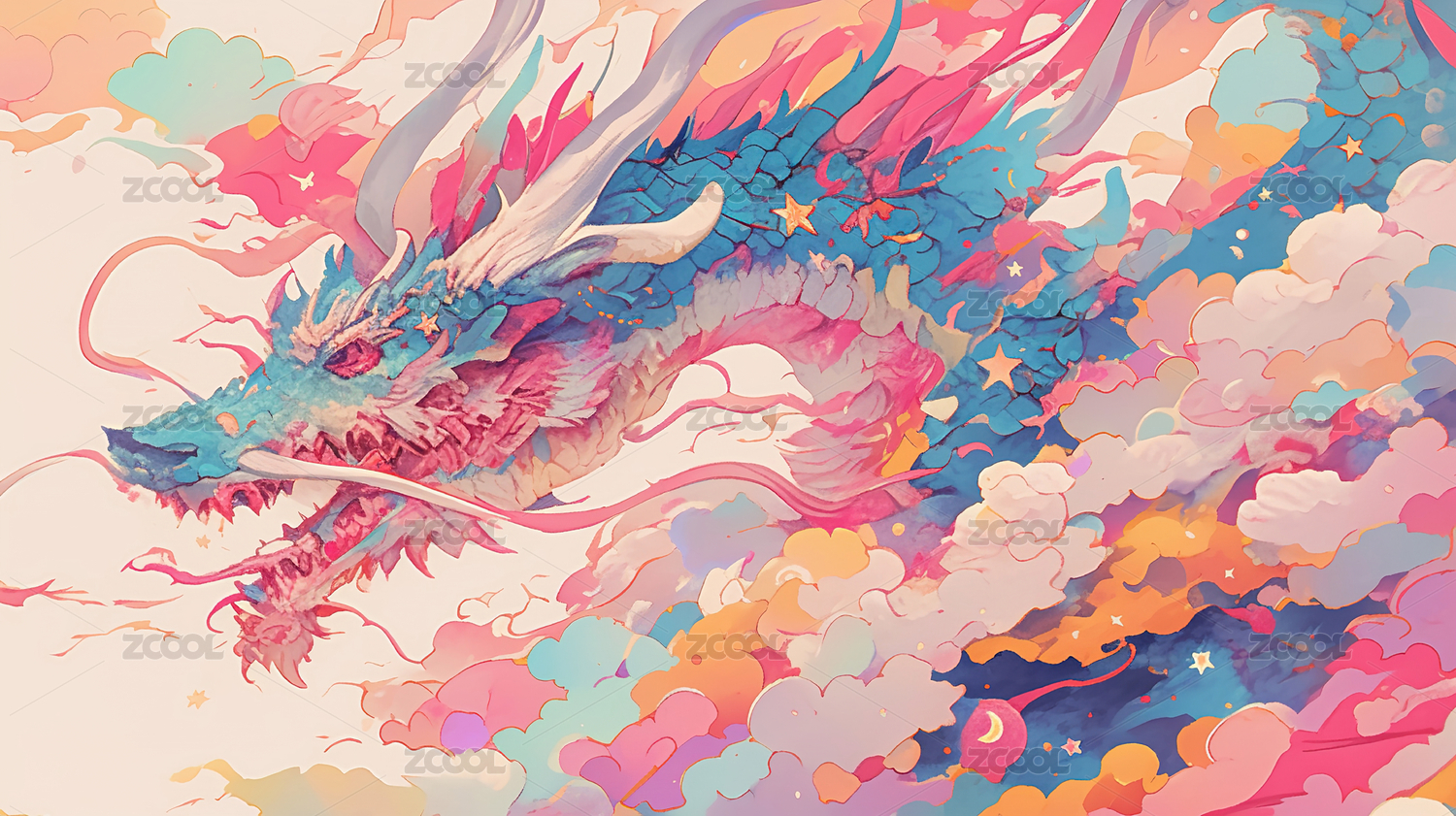 东方,中式,宁静,云,意境,龙,粉色,祥云,传统,龙年