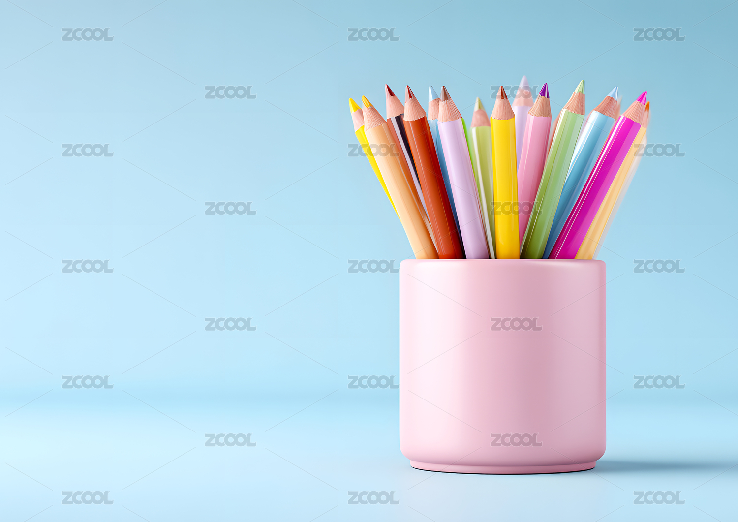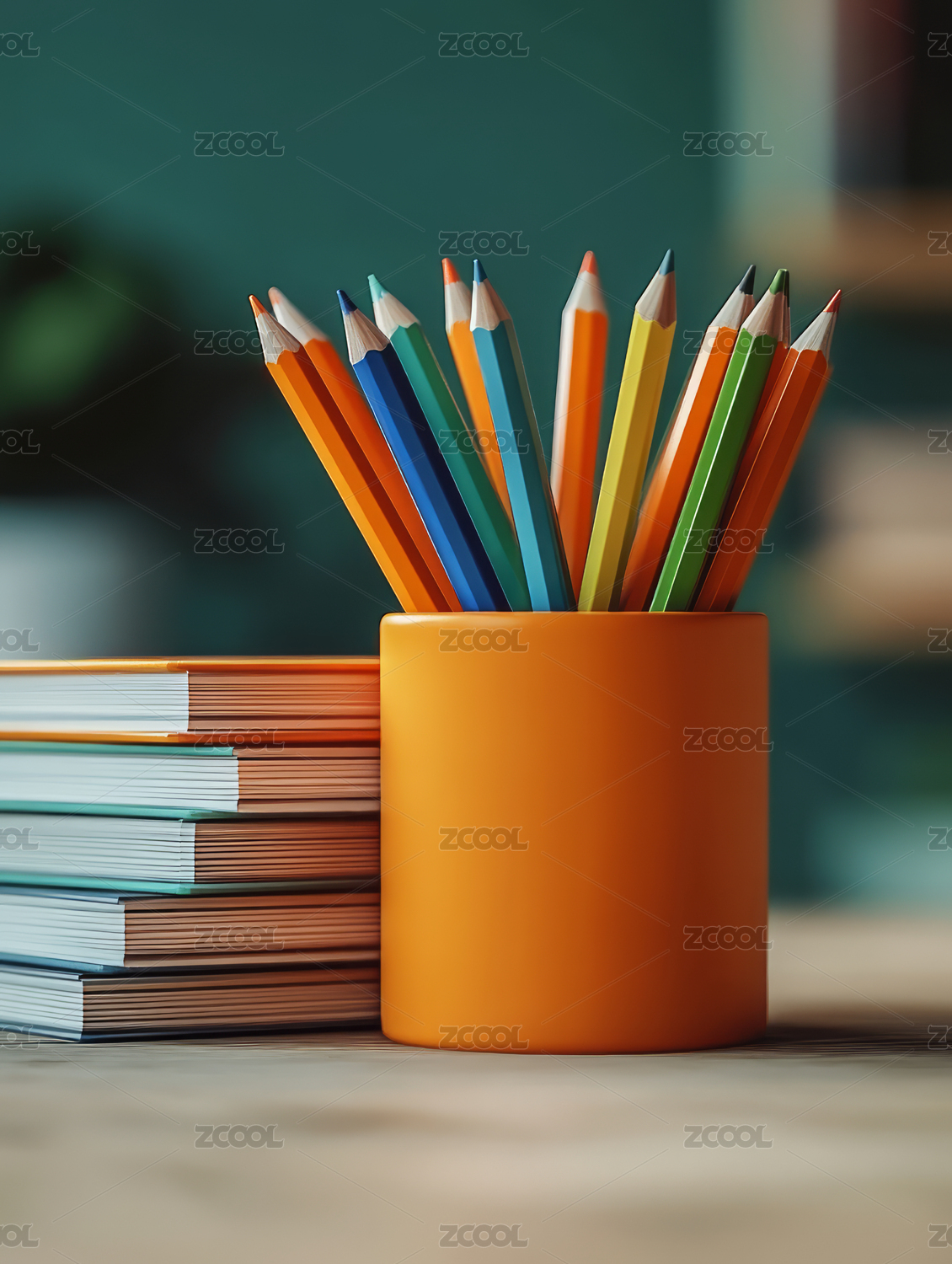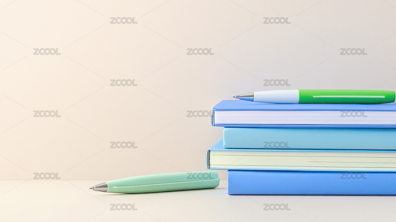 叠起的书籍笔筒铅笔学生文具,教育主题背景