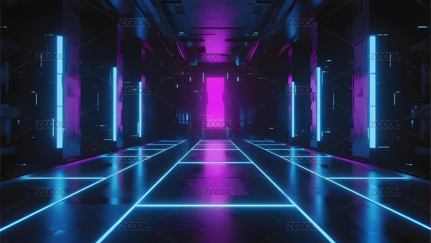数码科技紫色霓虹灯抽象未来派隧道海报背景