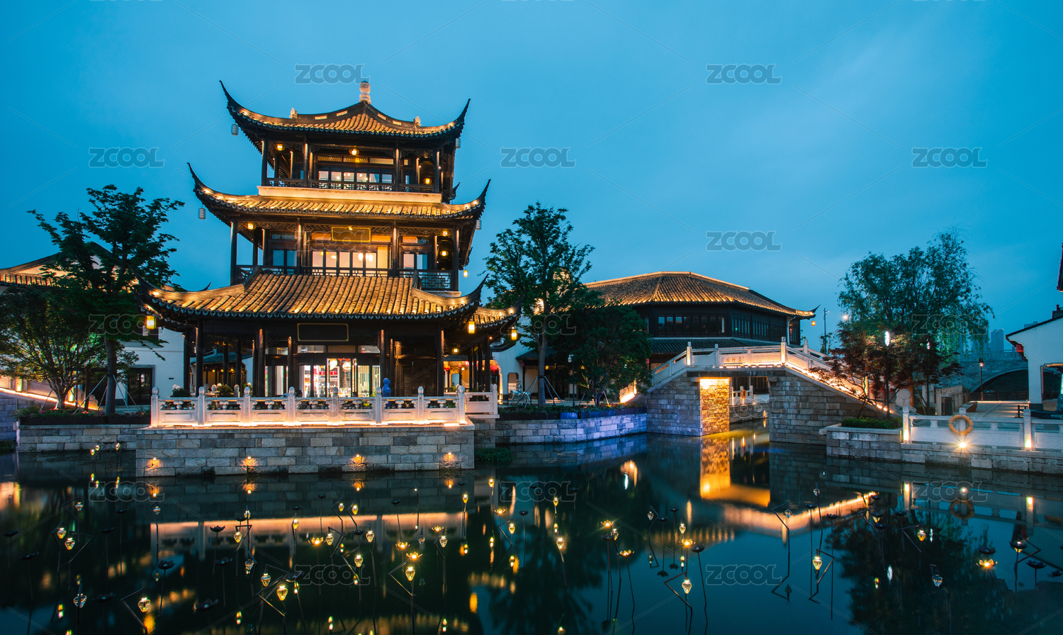 东晋水城,盐城大纵湖景区,仿古建筑,城楼,城墙,夜景,塔楼,风光,徽派建筑,明清建筑