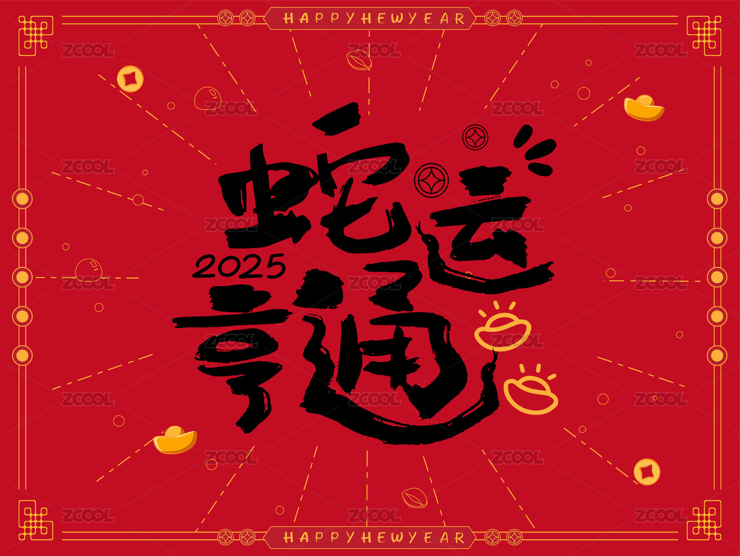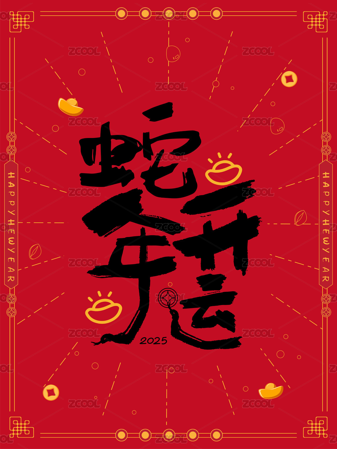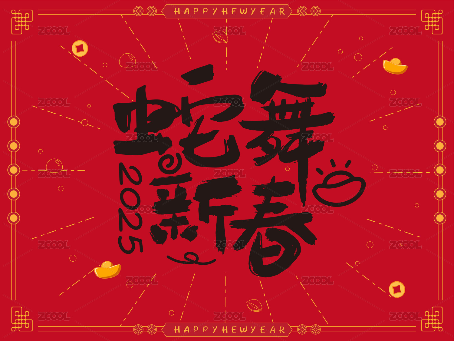 2025蛇年新年春节蛇年大吉祝福语文字贴