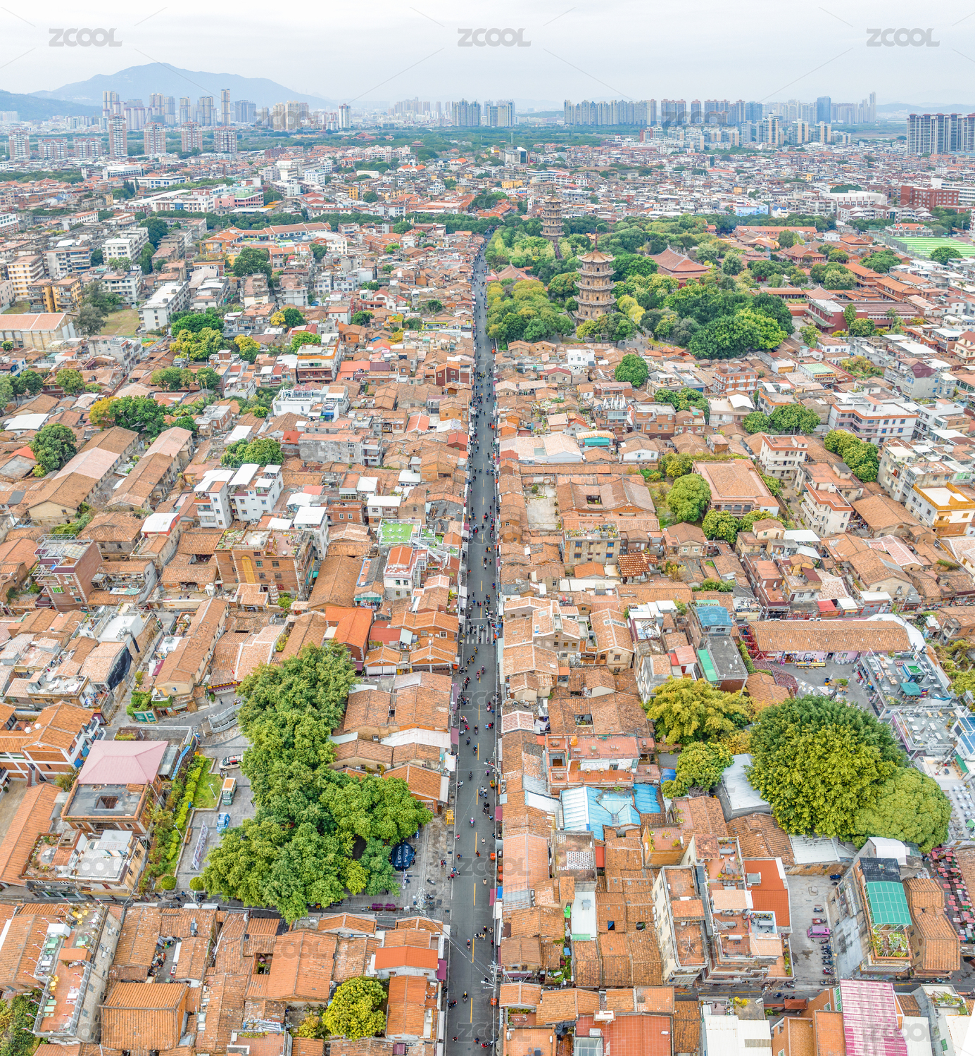 泉州古城鲤城区番仔楼与开元寺双塔航拍