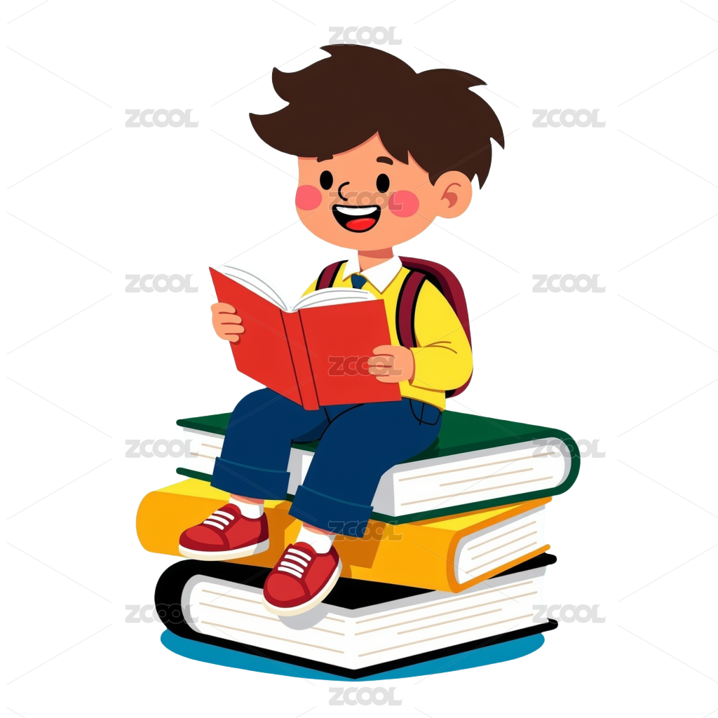 站在书上手拿笔的男孩