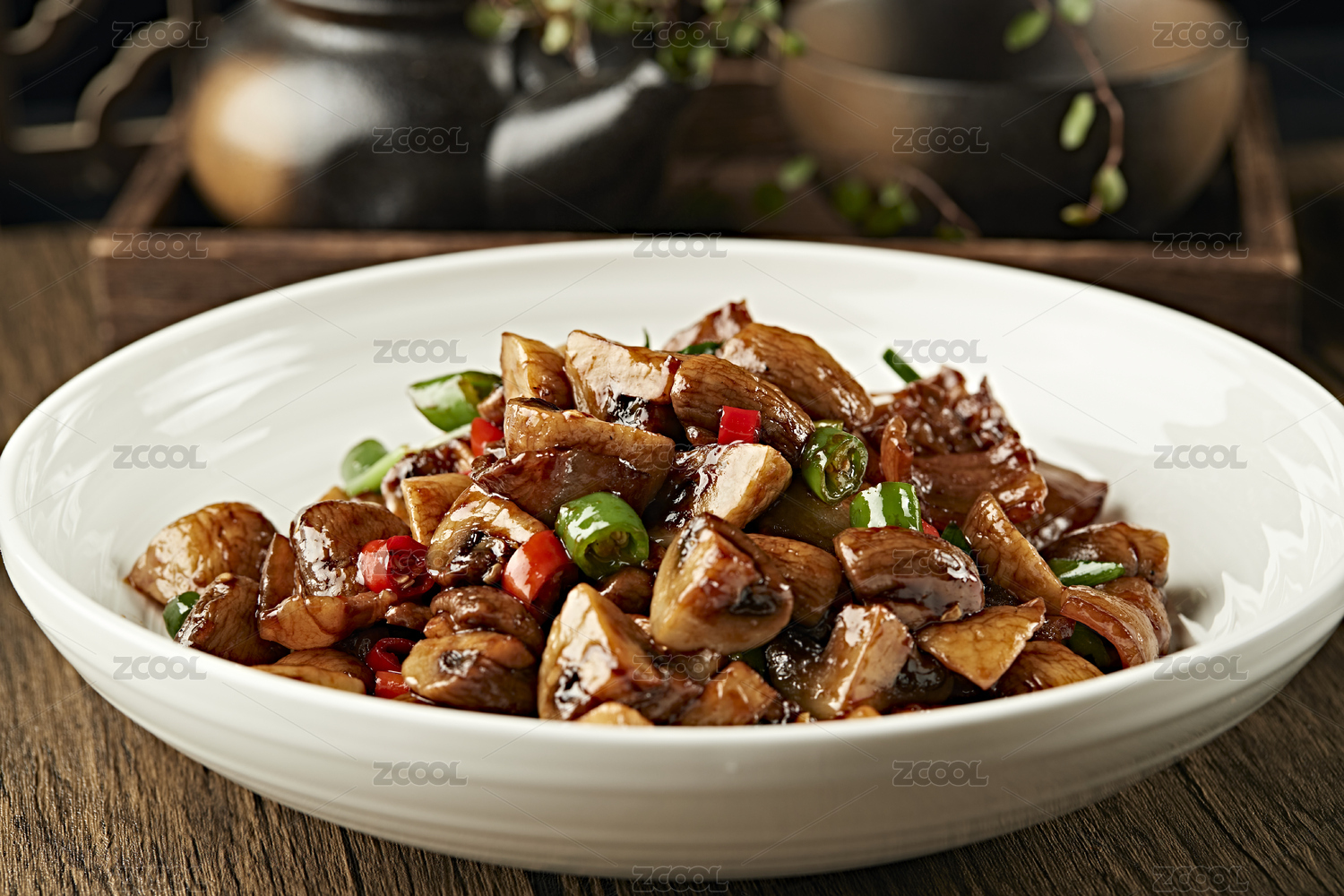 香辣酱烧口蘑腊肉