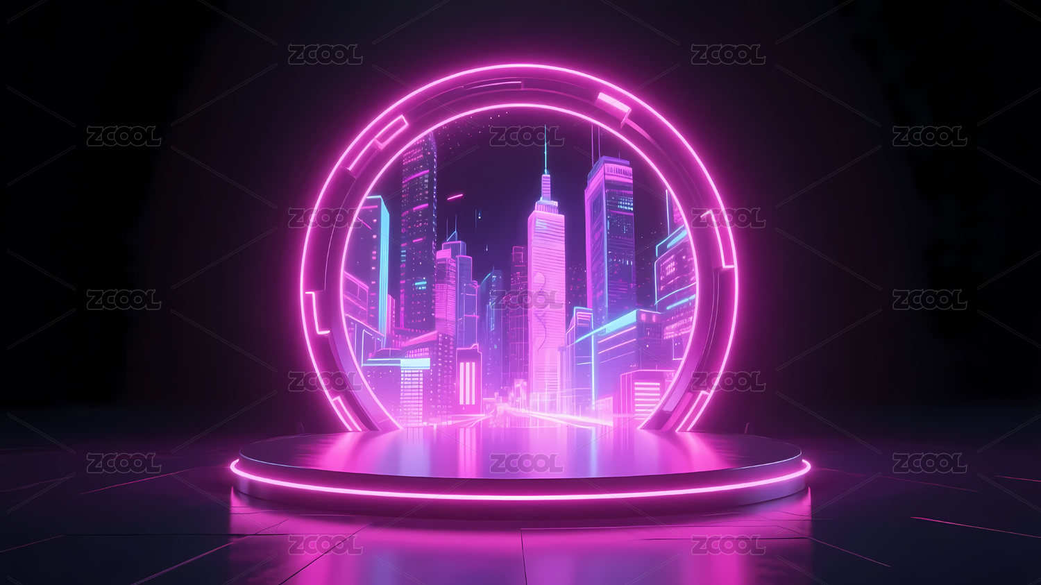 科幻城市夜景圆形平台
