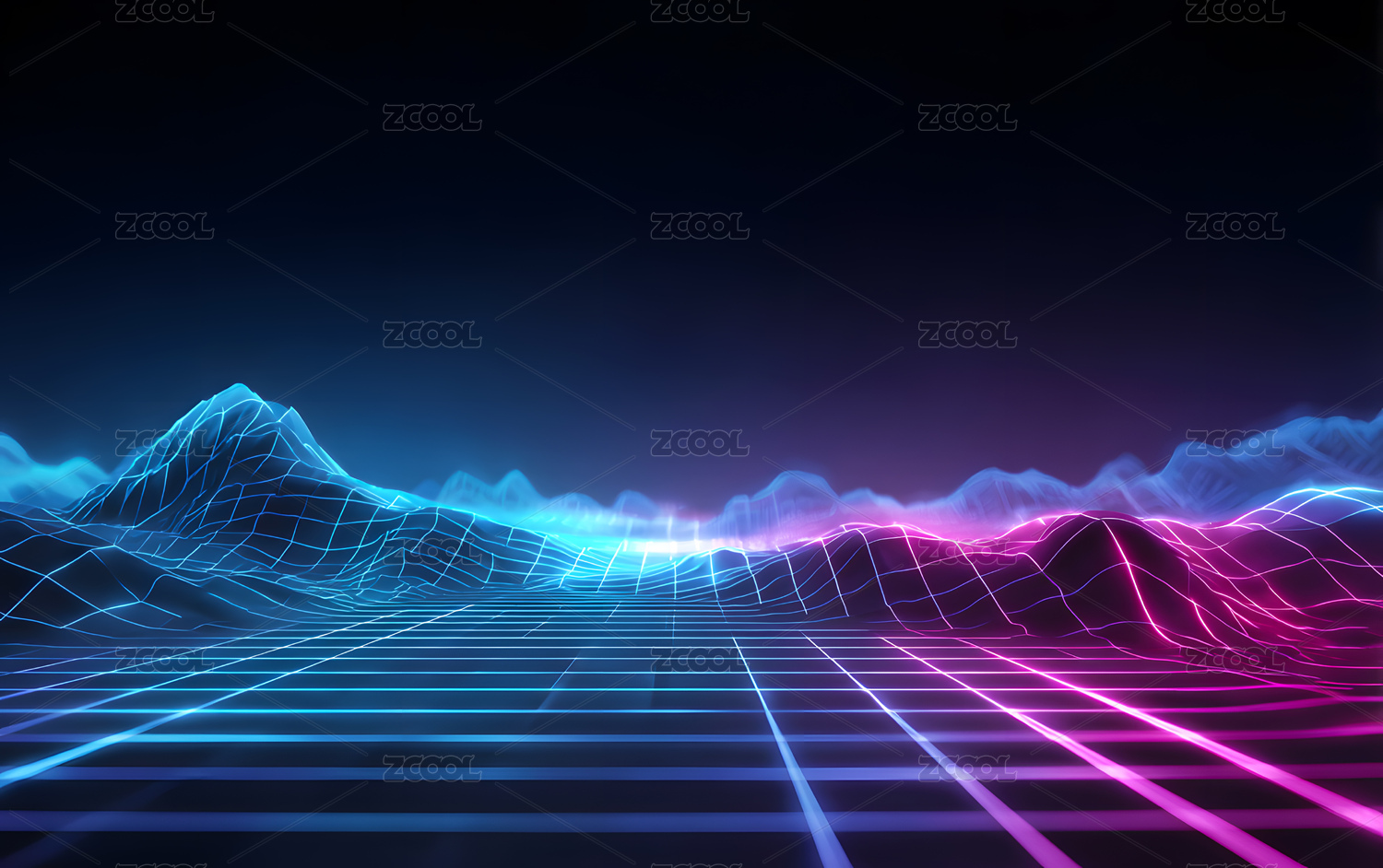 蓝色, 紫色, 光线, 奇幻, 抽象, 背景, 壁纸, 山脉, 夜晚, 天空