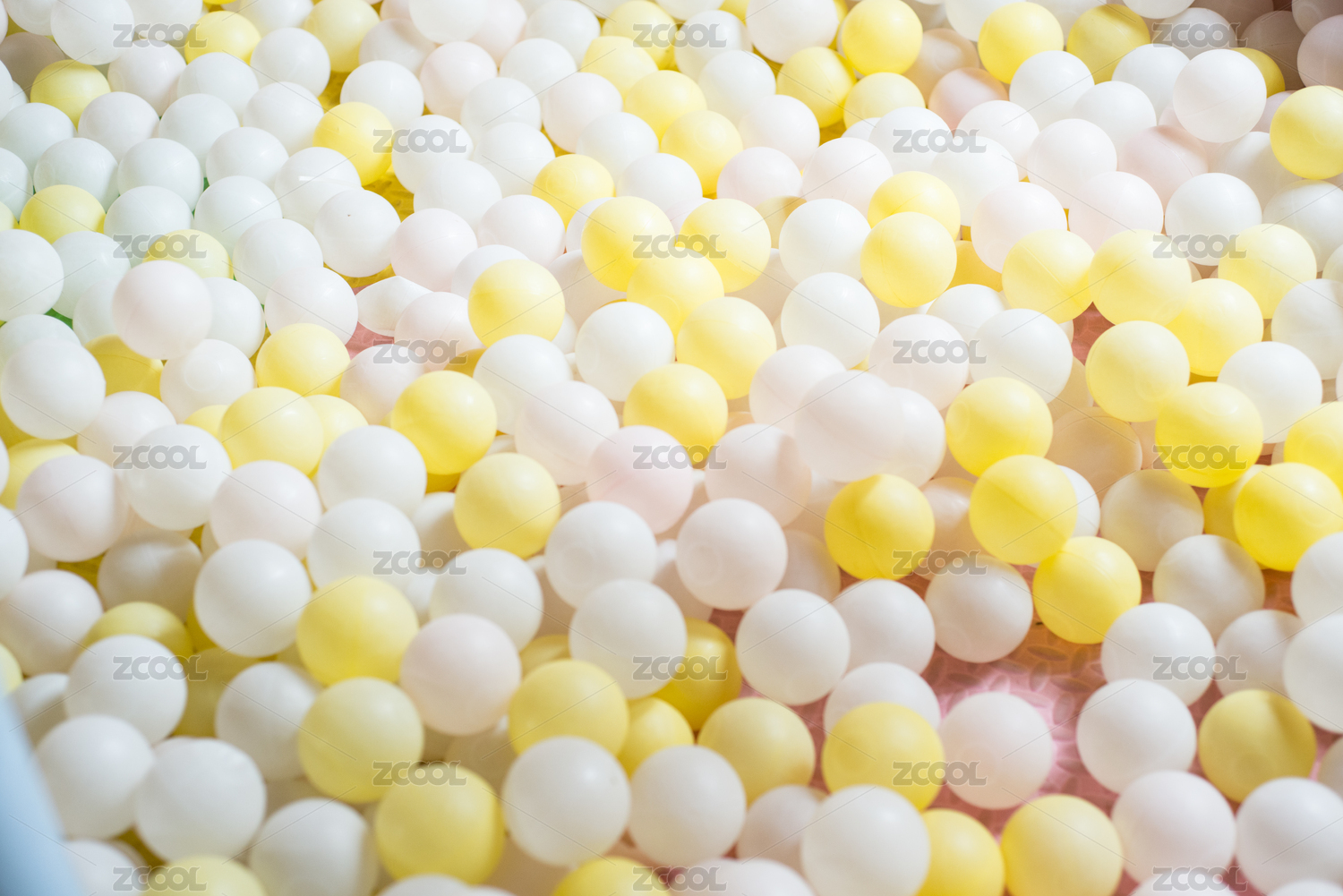 儿童游乐场里黄色和白色的海洋球