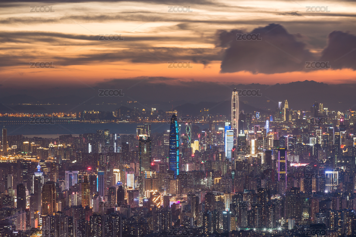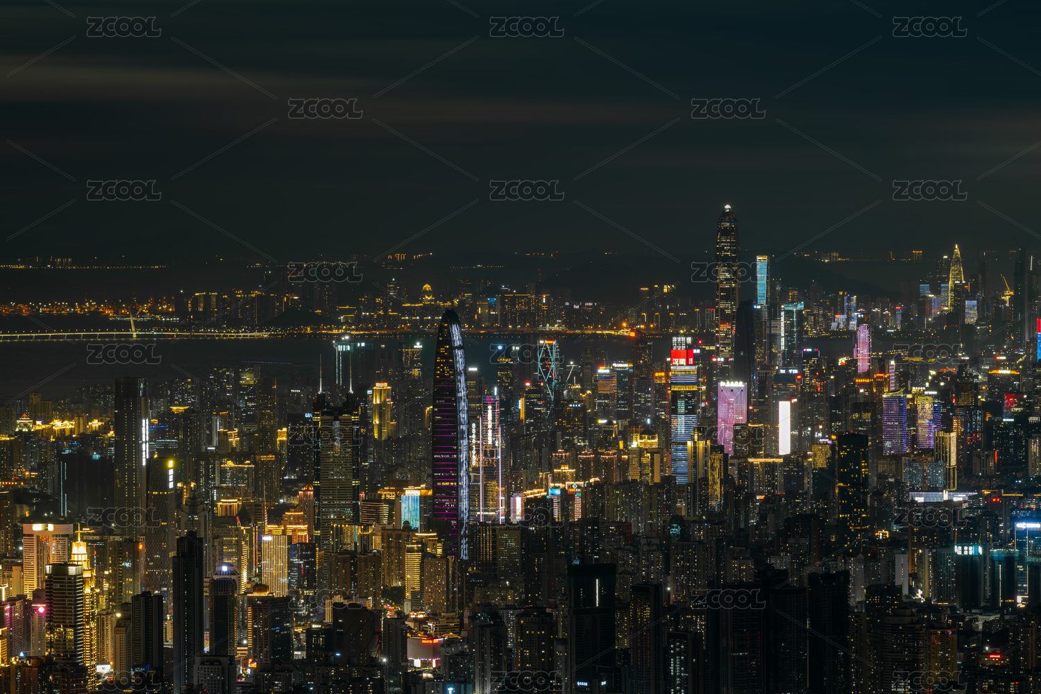 夜晚的中国深圳市罗湖区城市天际线建筑群风光
