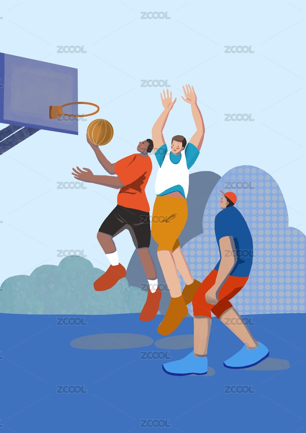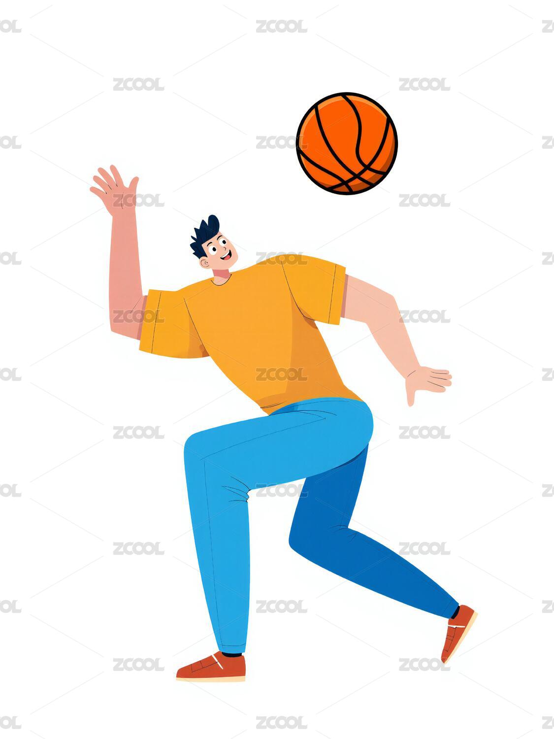 人物,篮球,扁平风,运动,夏天,夸张,可爱,插画,原创,活泼