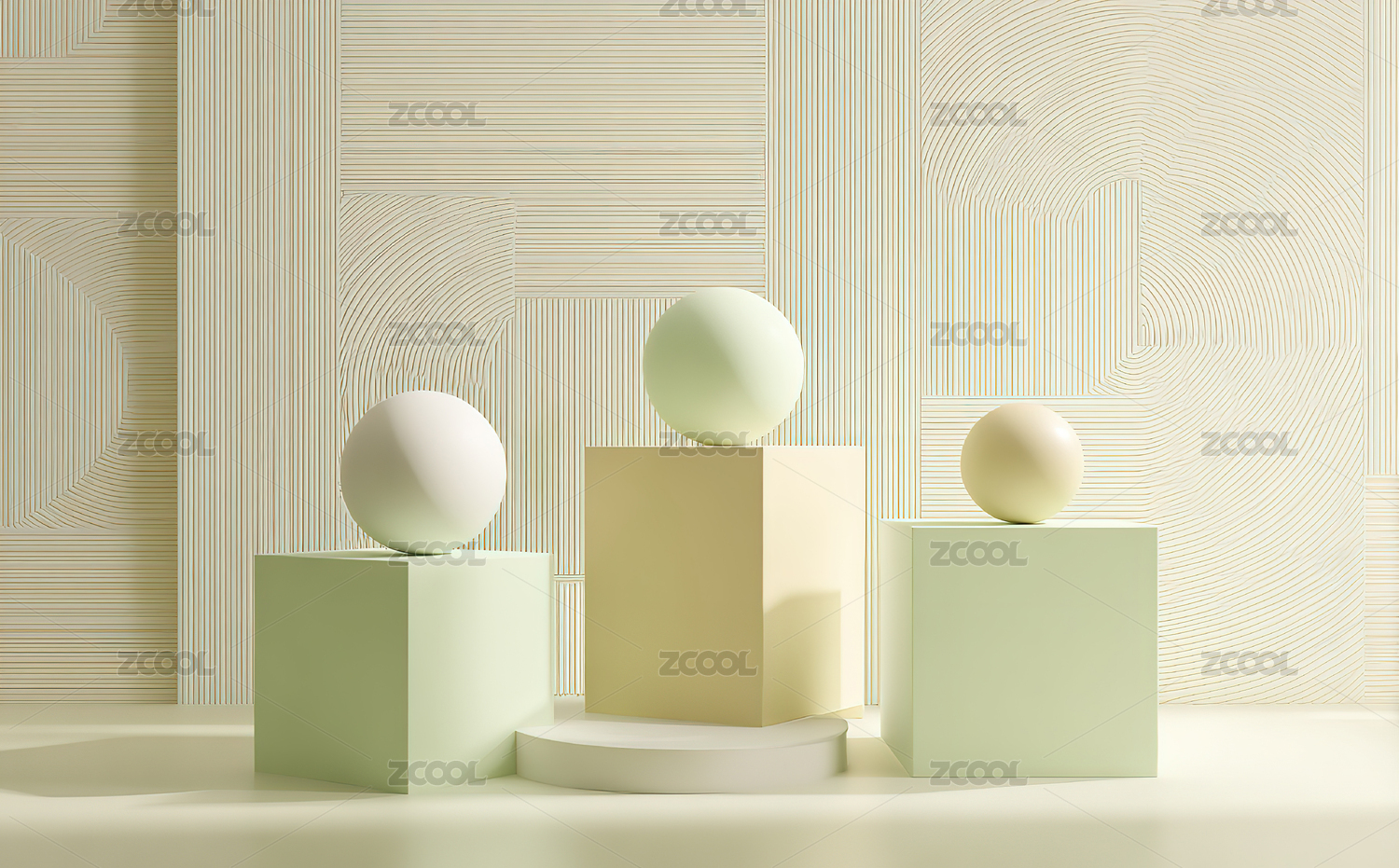 几何形状与柔和色彩的抽象场景