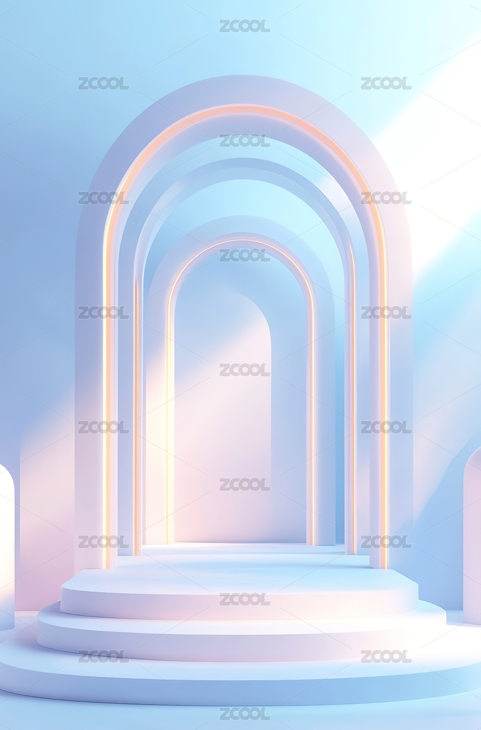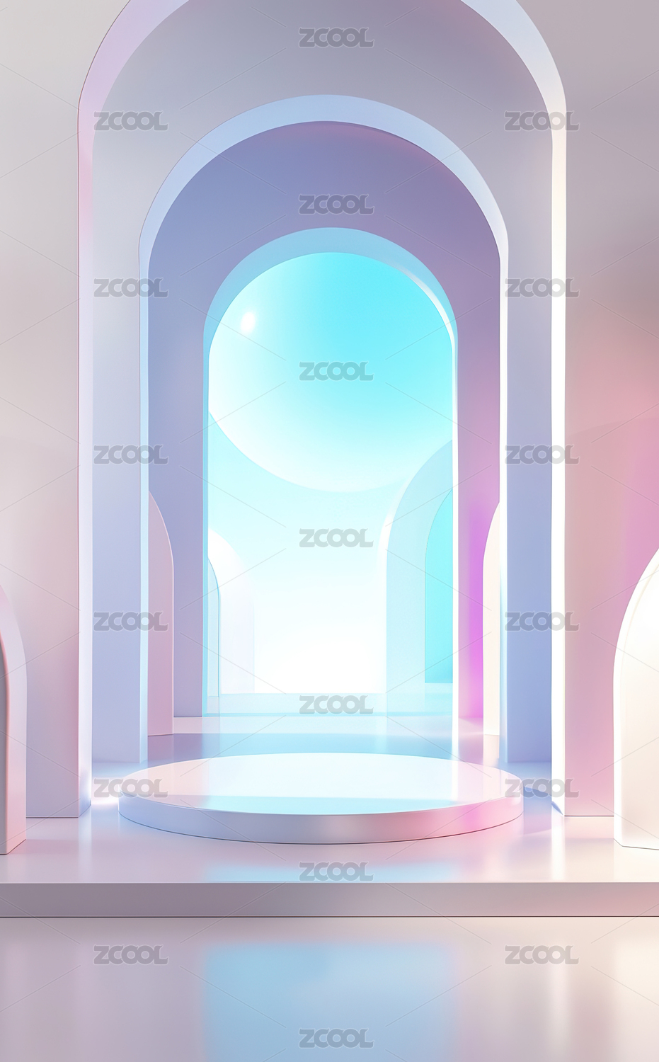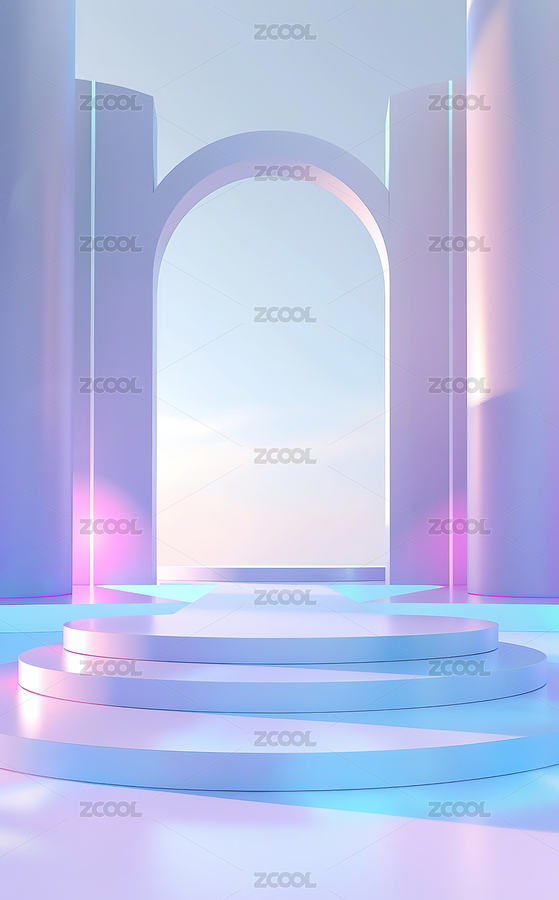 未来感圆形舞台与拱门背景