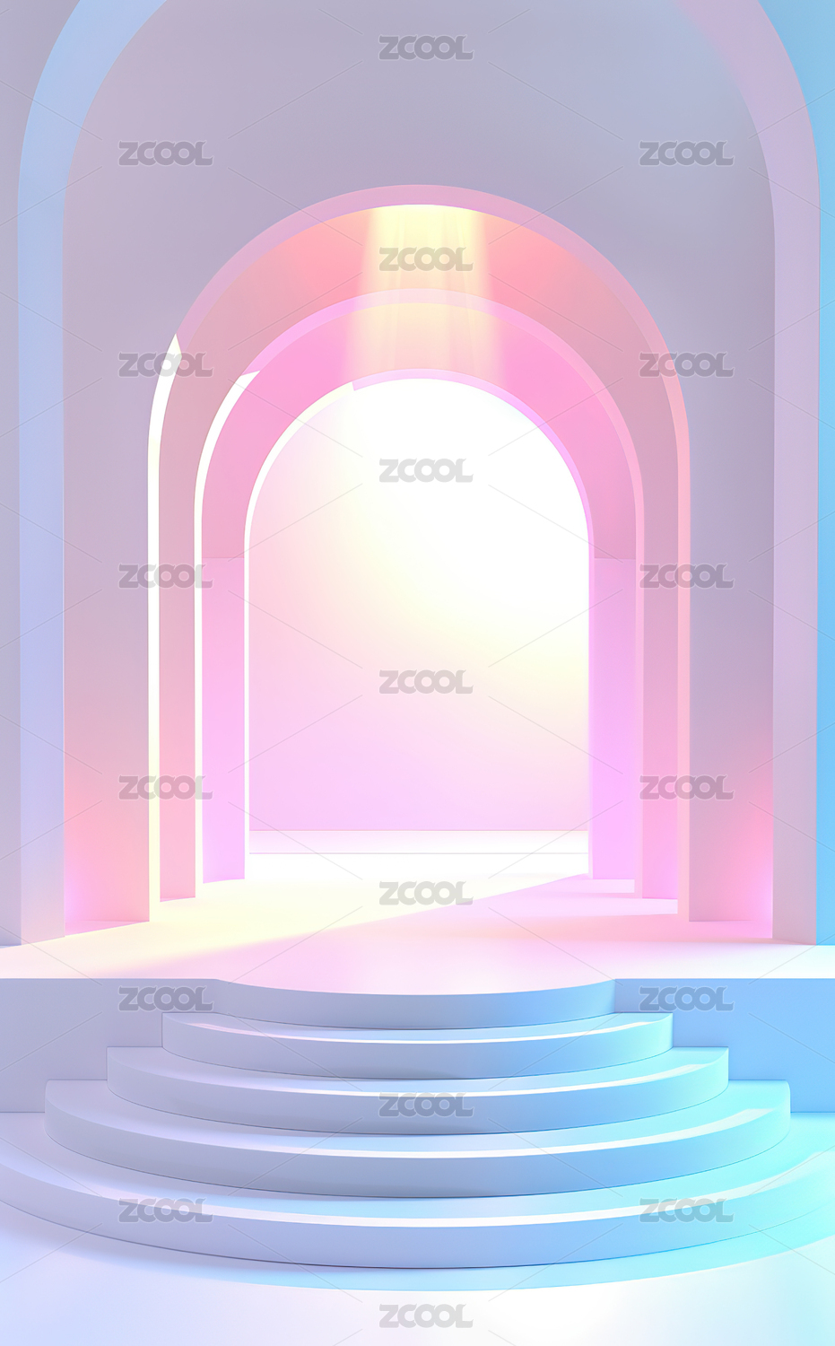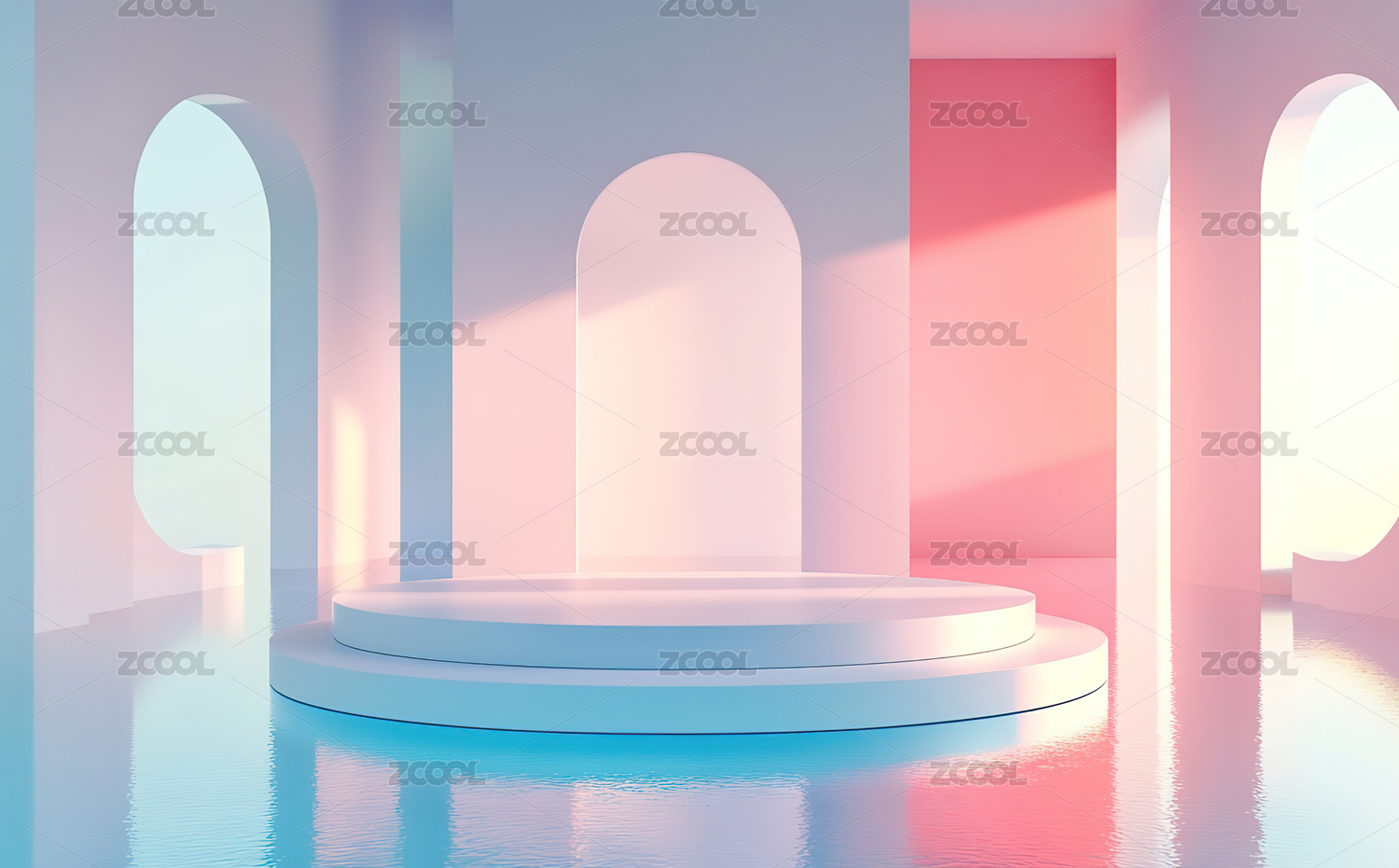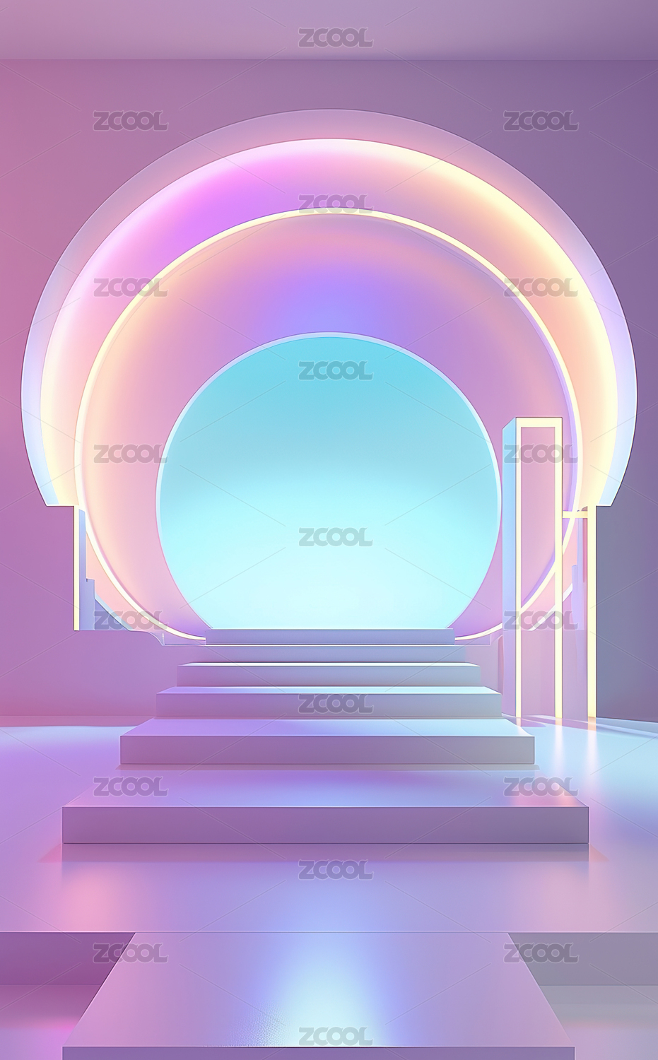 未来感圆形舞台与拱门背景