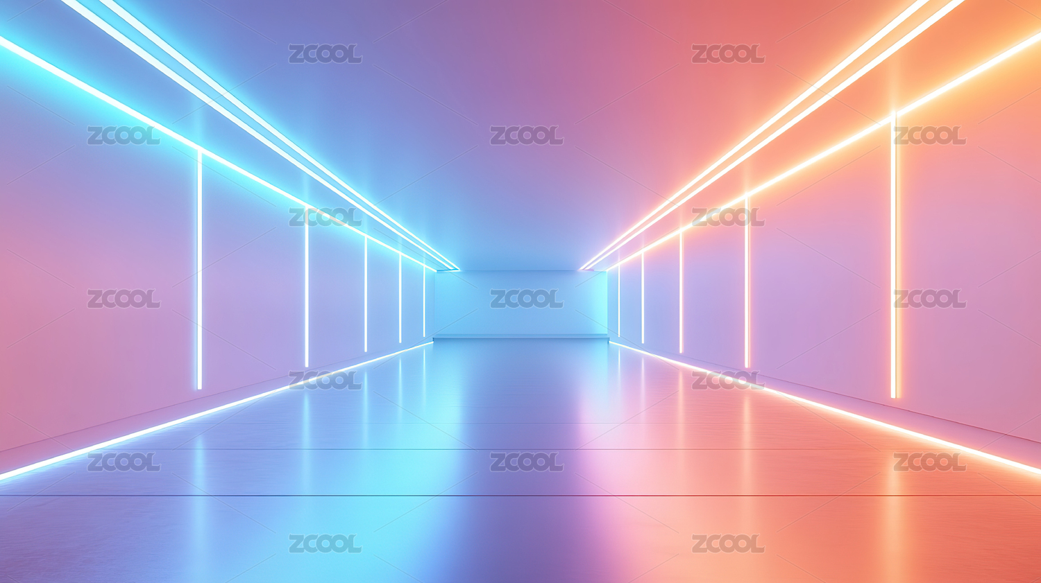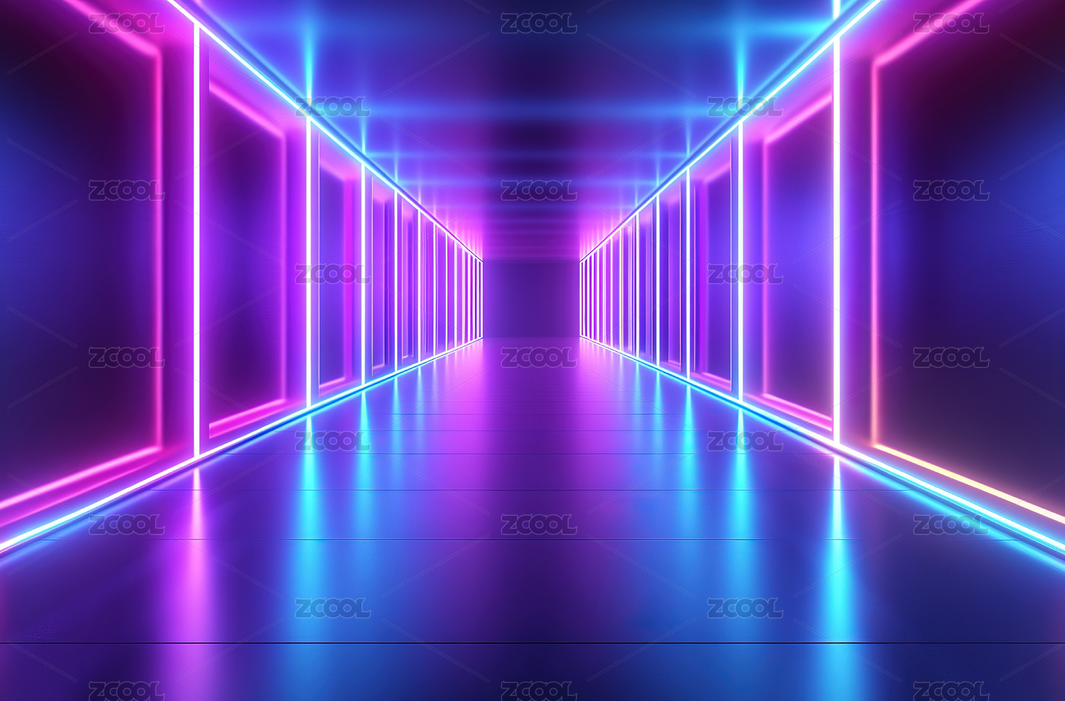 3D渲染科幻几何隧道霓虹灯线概念插图