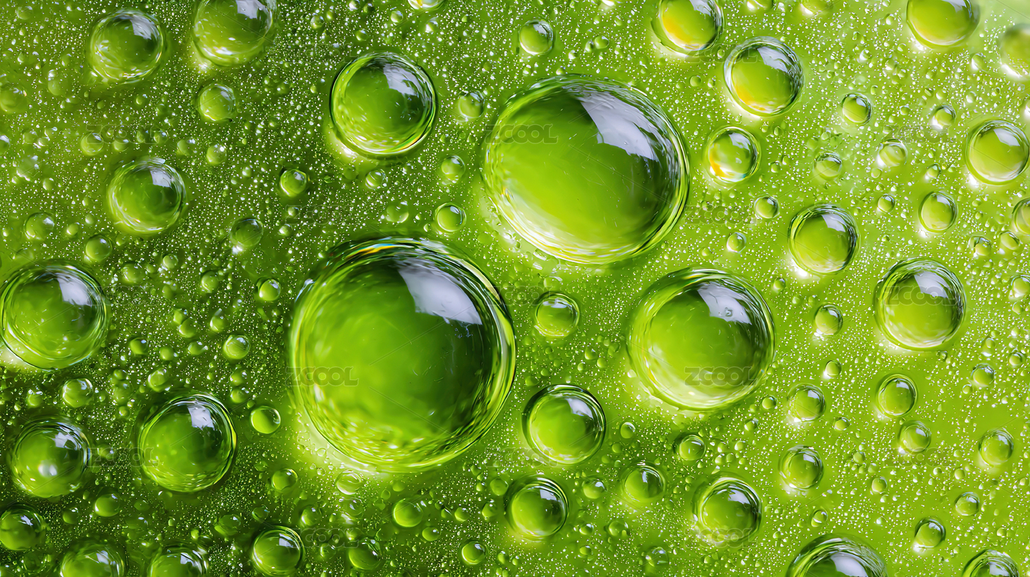 绿色背景下的水滴全帧拍摄